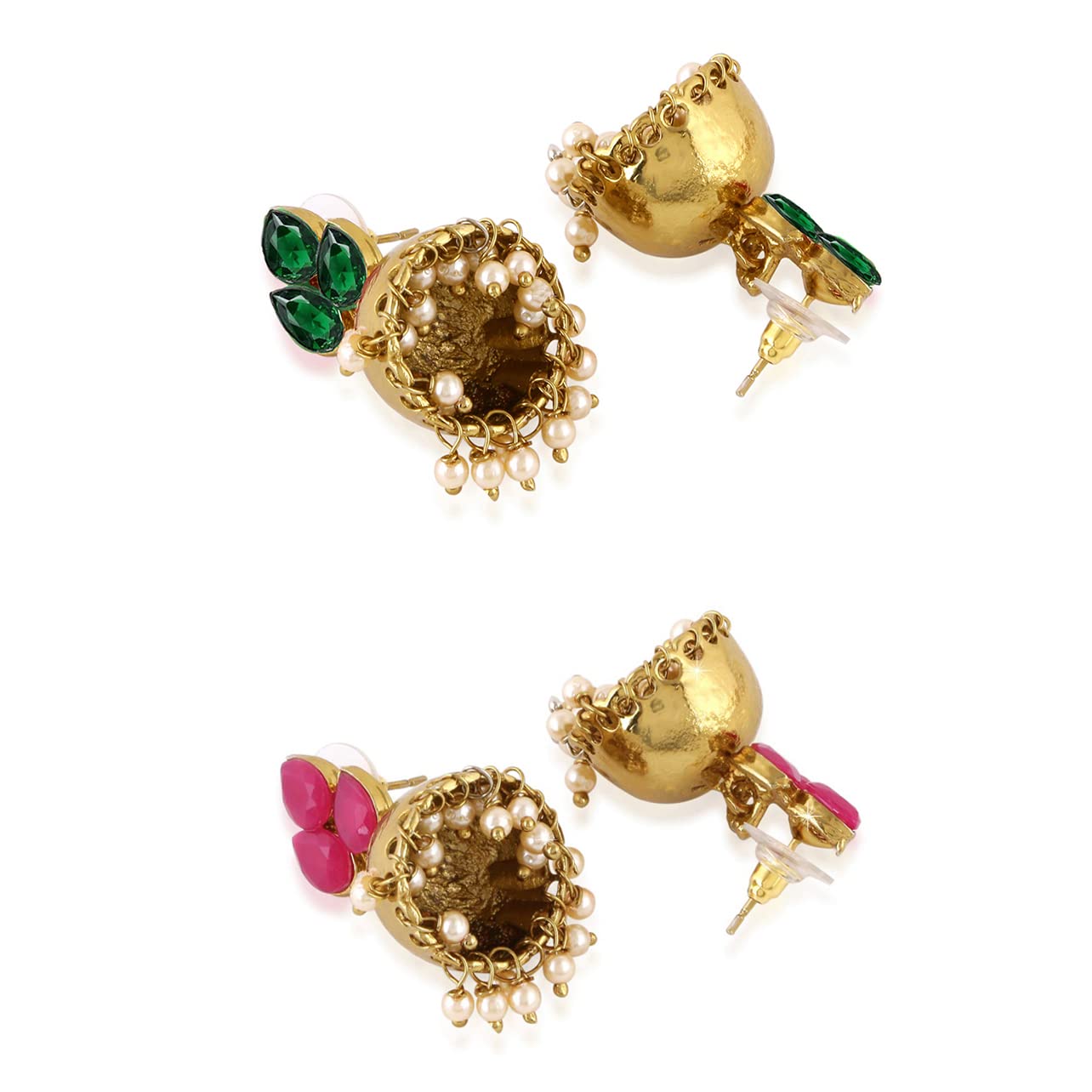 Earrings for Women & Girls | Traditional Gold Plated 2 Pairs Jhumka Earrings with Hanging Pearls | Dome Shape Jhumki Earring | Birthday Gift for Girls & Women Anniversary Gift for Wife