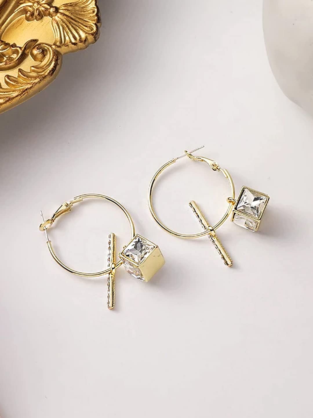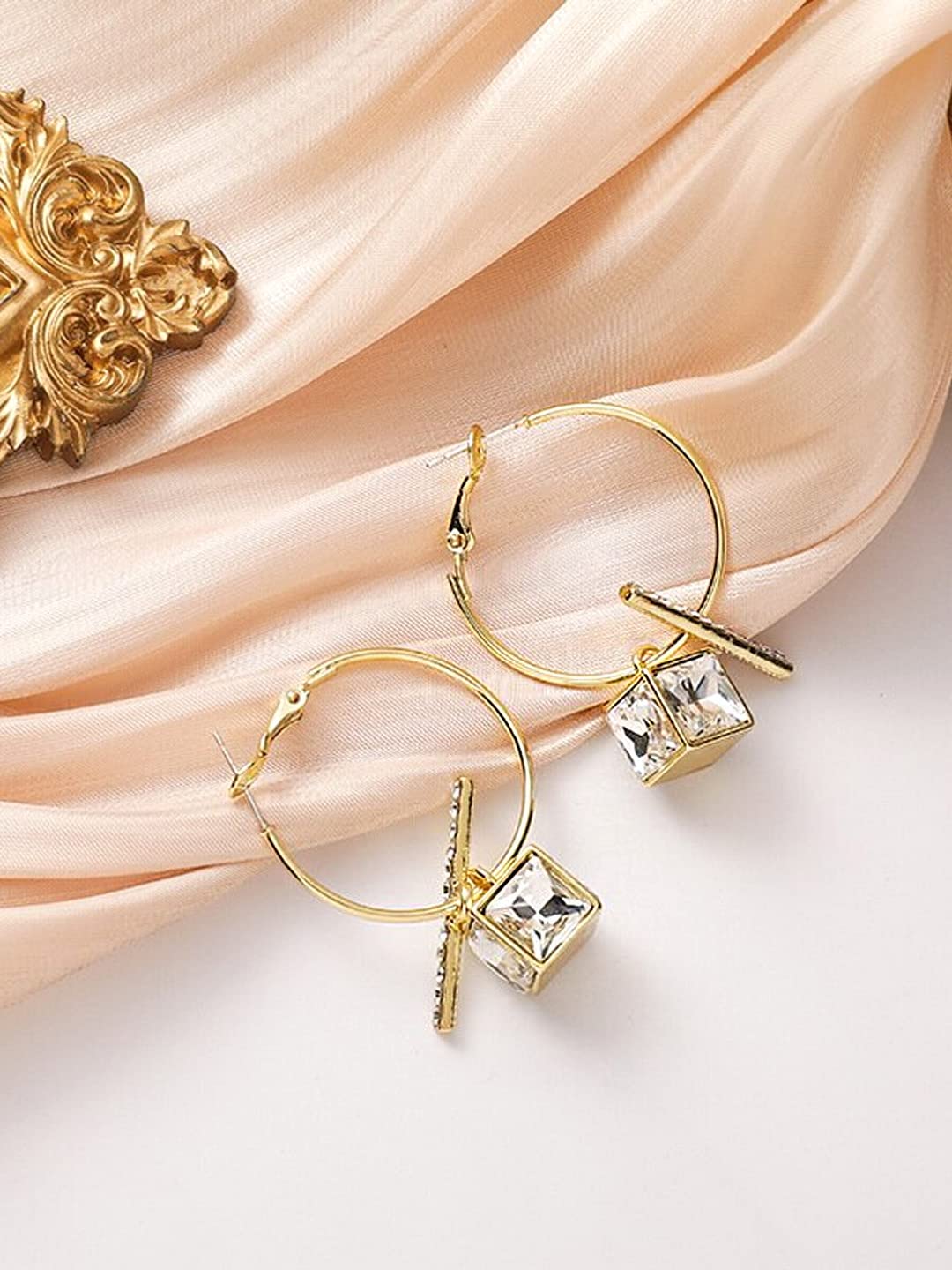 Earrings For Women Gold Tone Contemporary Hoop Bali Crystal Drop Earrings For Women and Girls