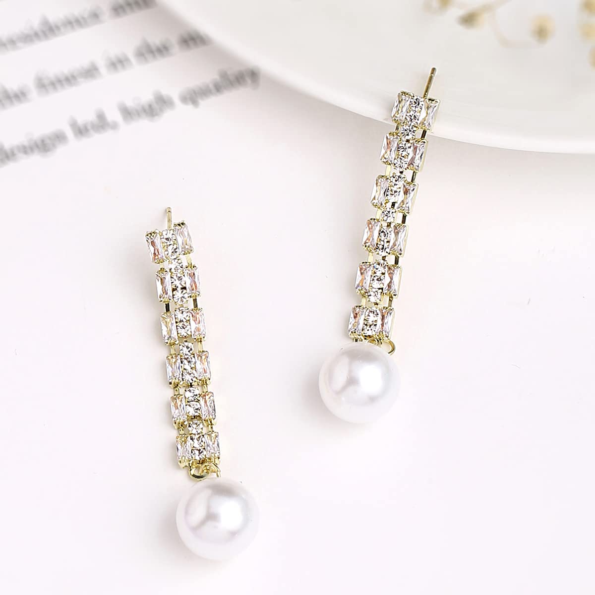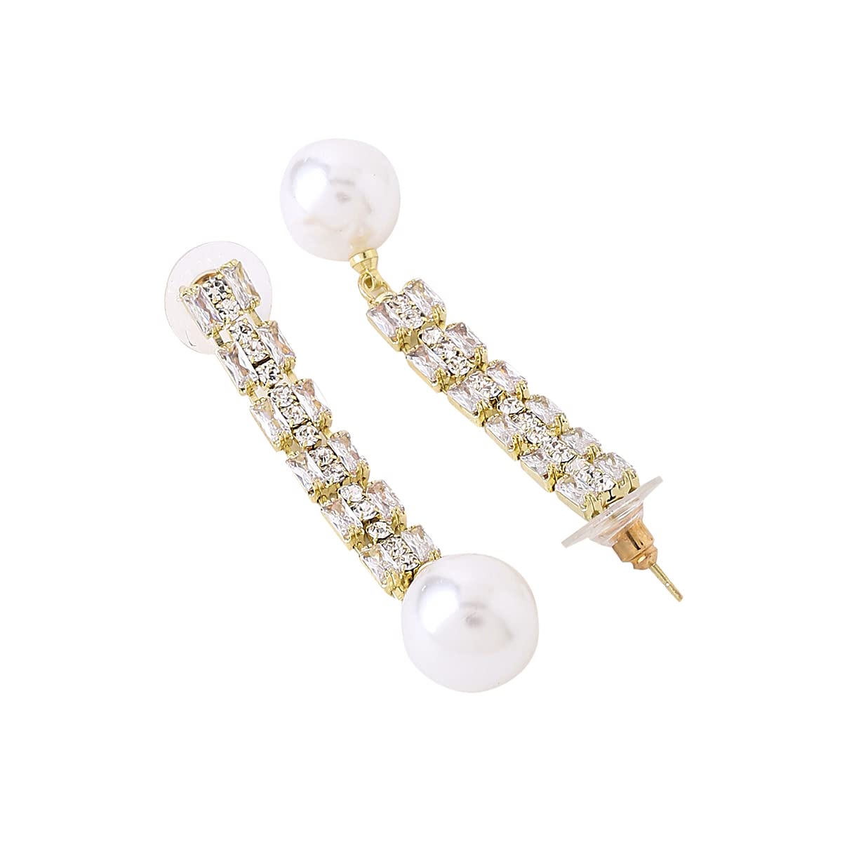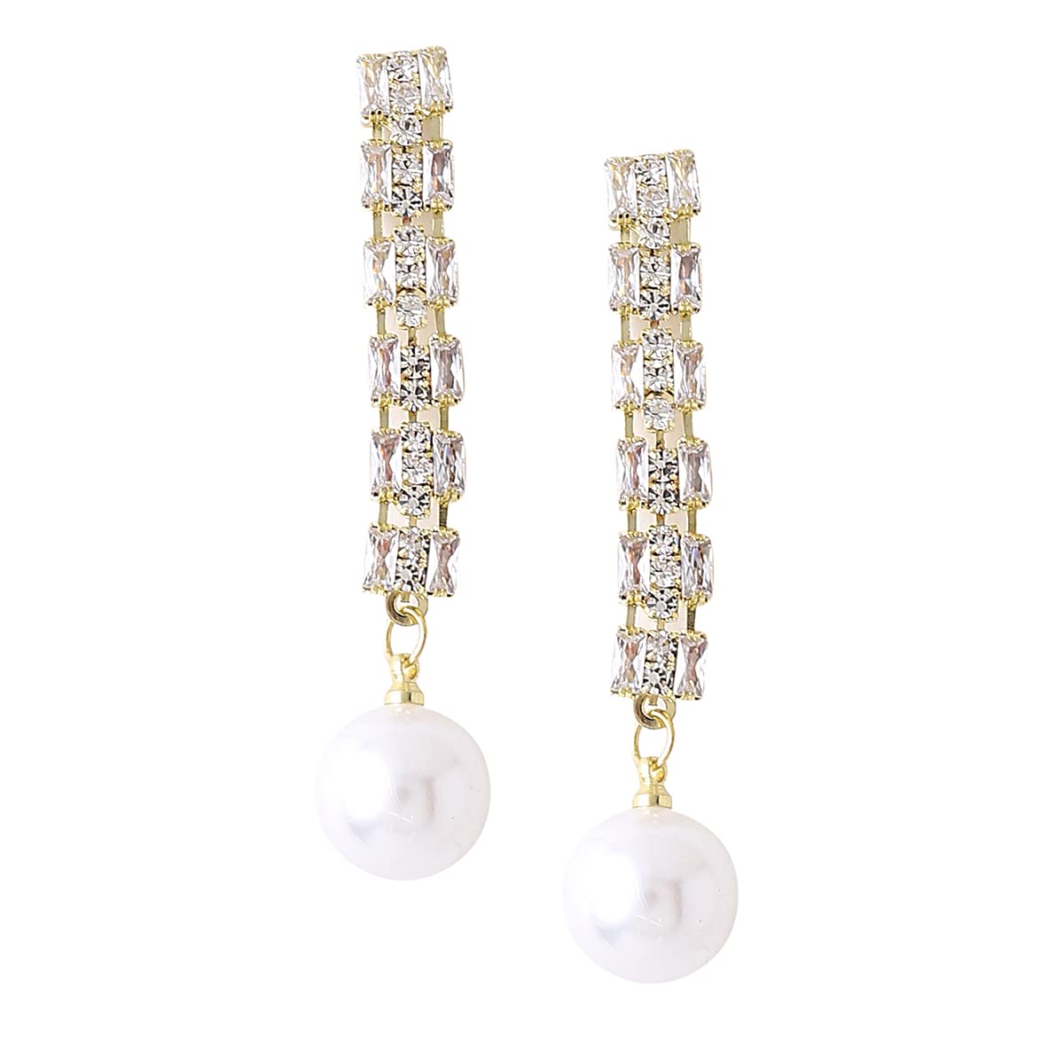 Earrings For Women Gold Tone Charming Crystal Studded Round Pearl Attached Drop Earrings For Women and Girls