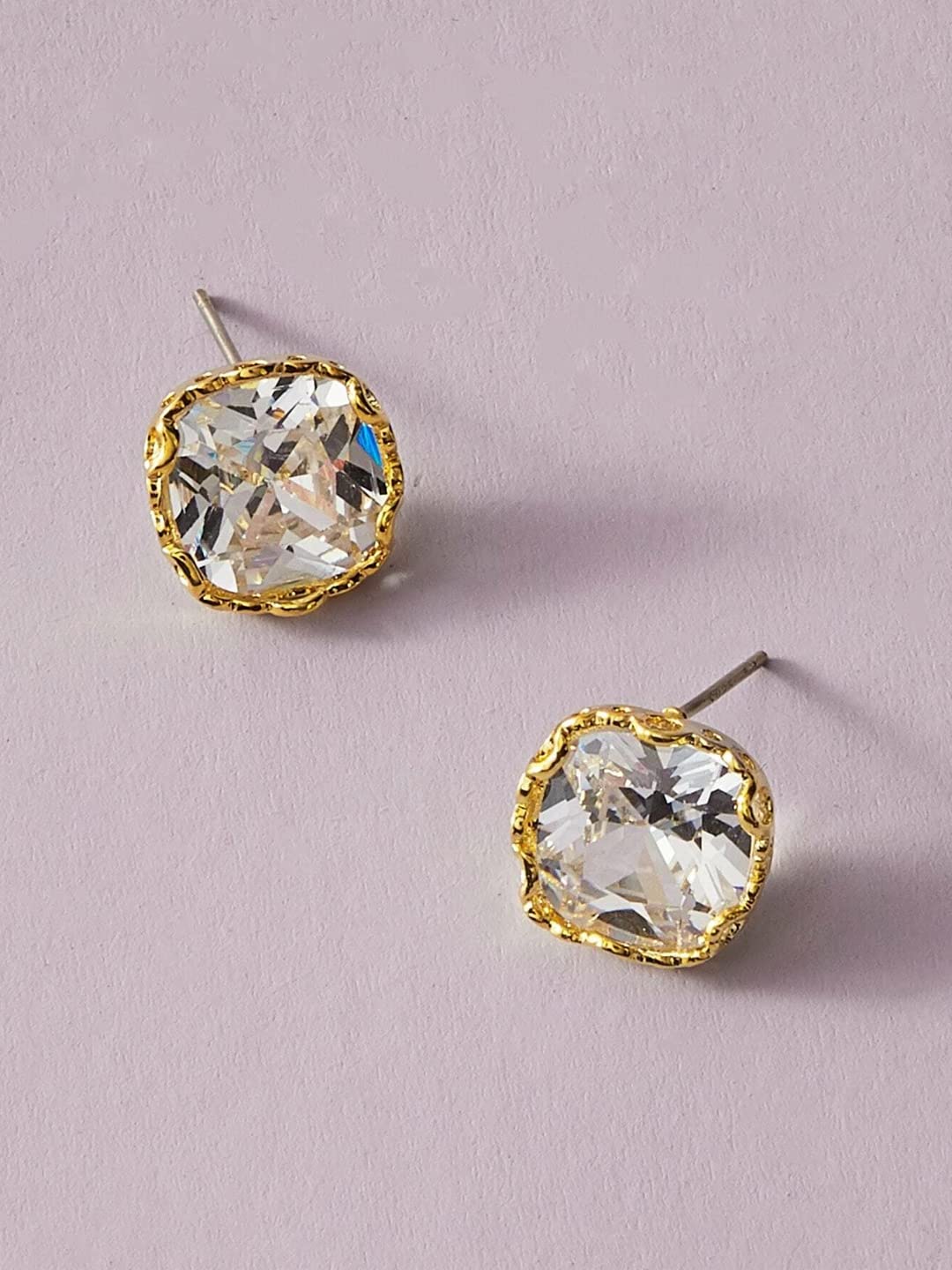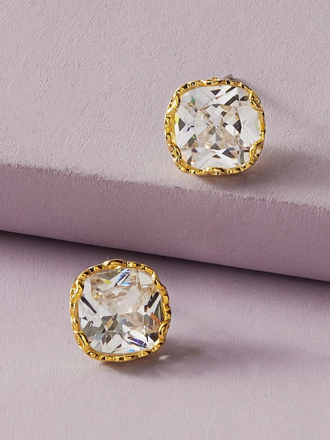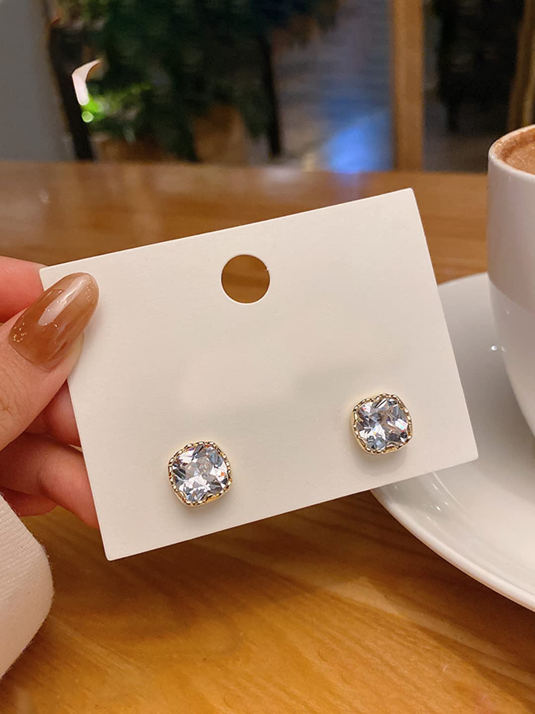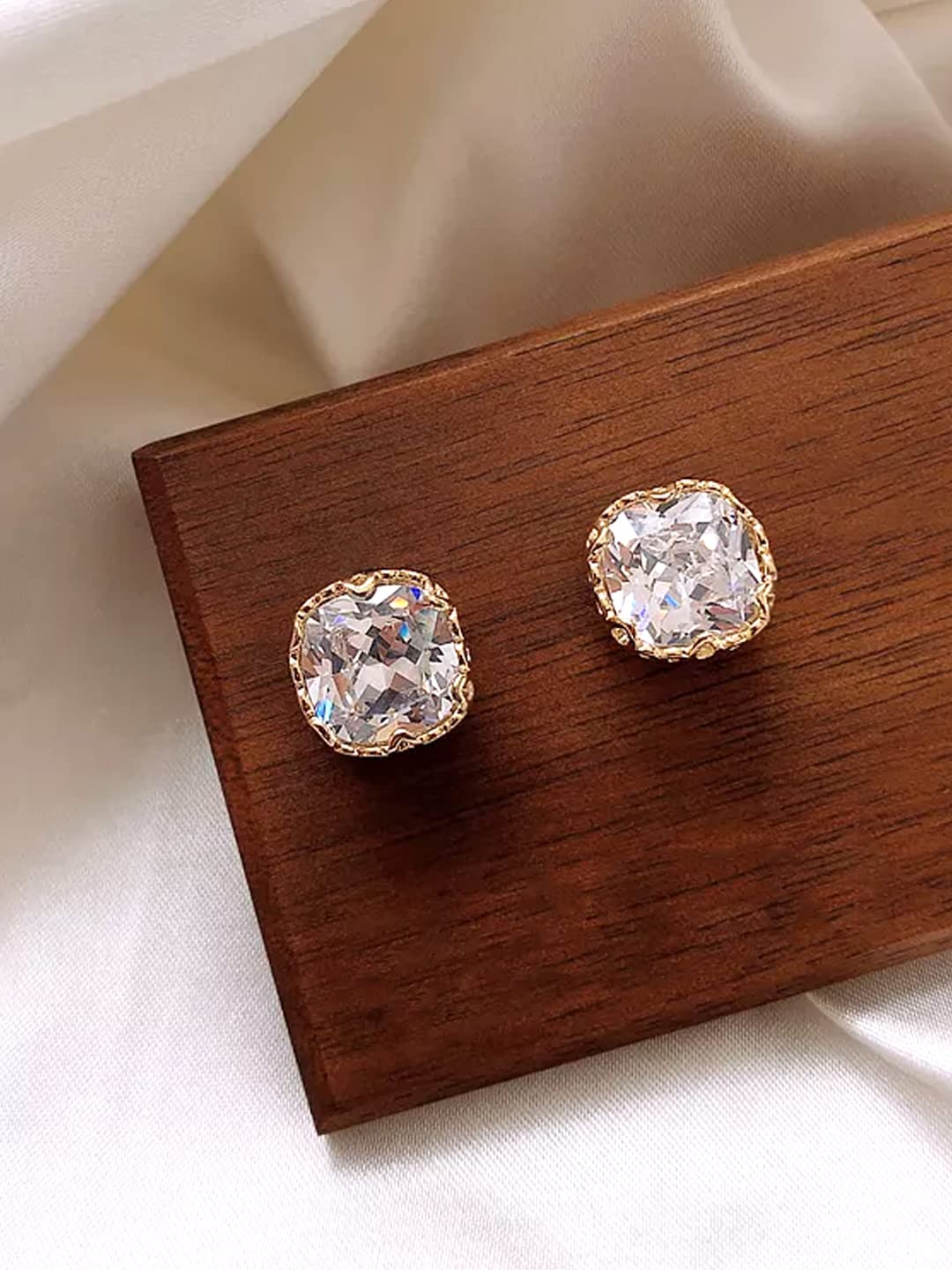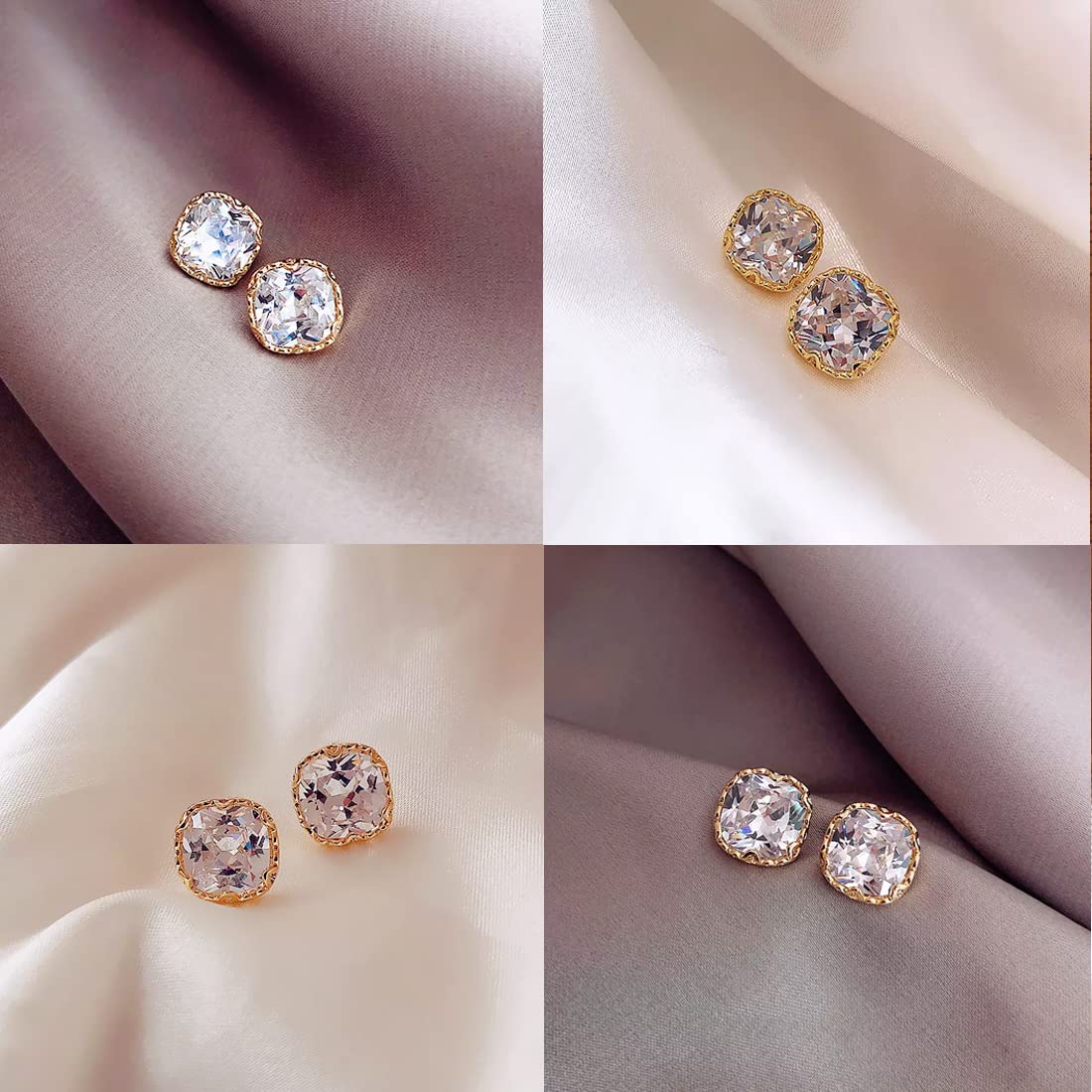 Earrings For Women Gold Tone Sparkling Crystal Daimond Shape Stud Drop Earrings For Women and Girls