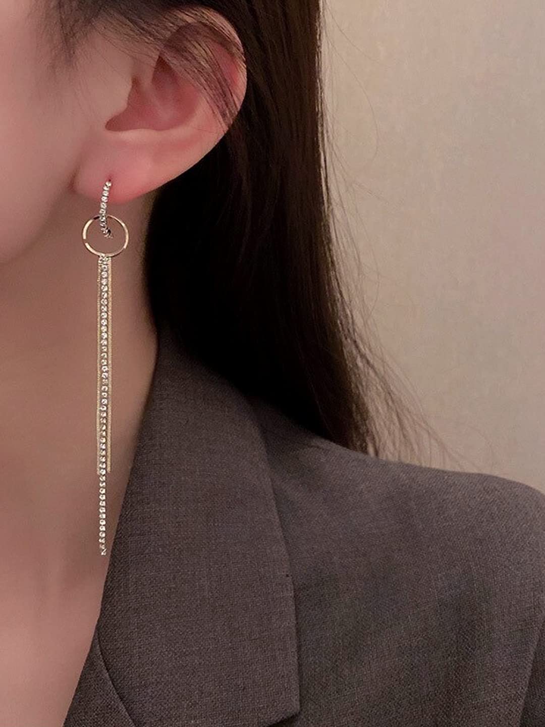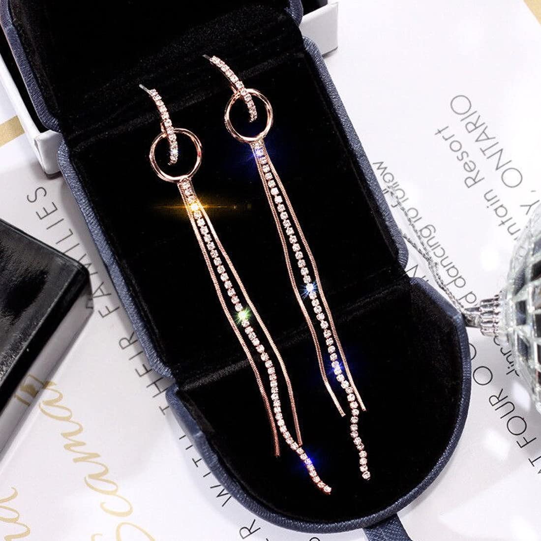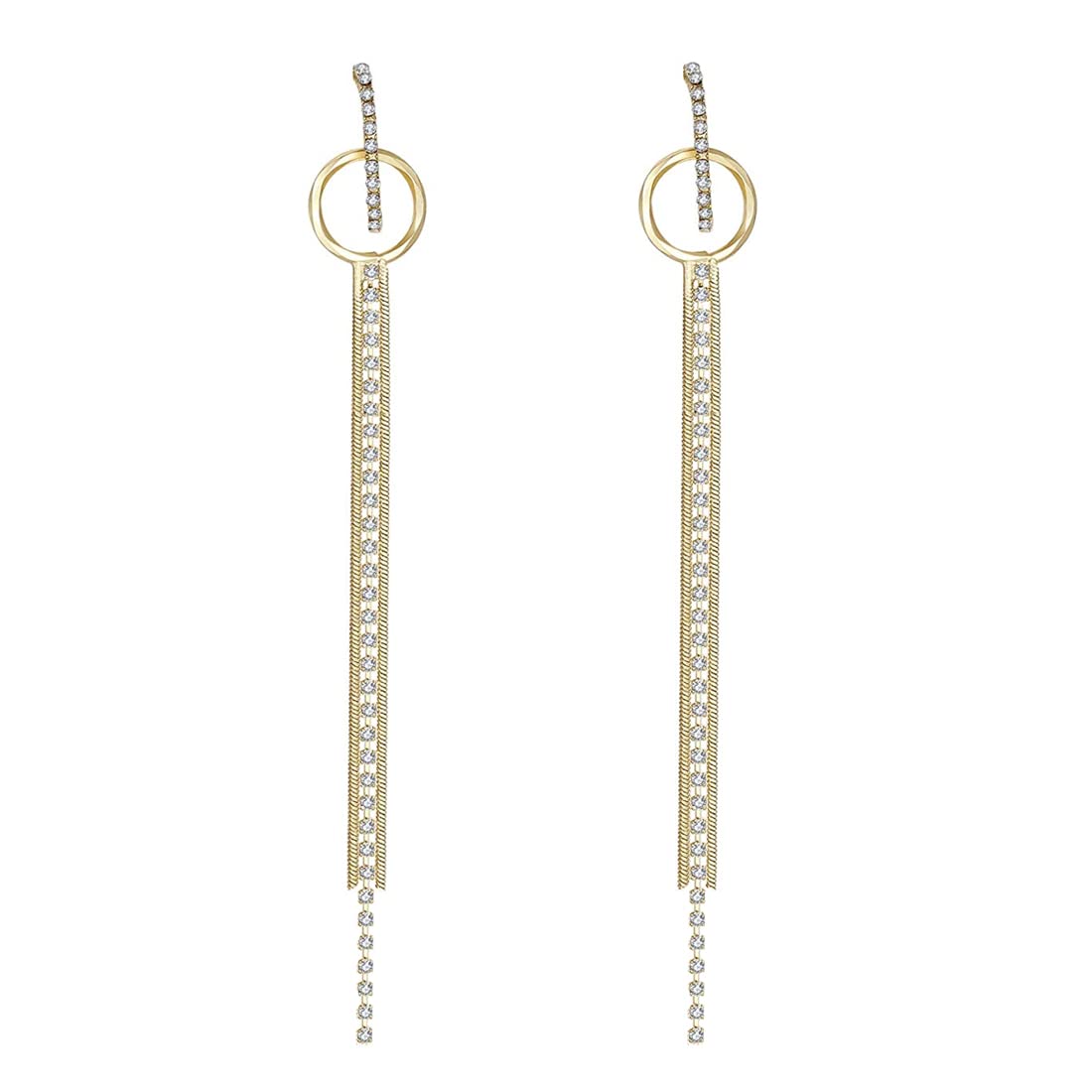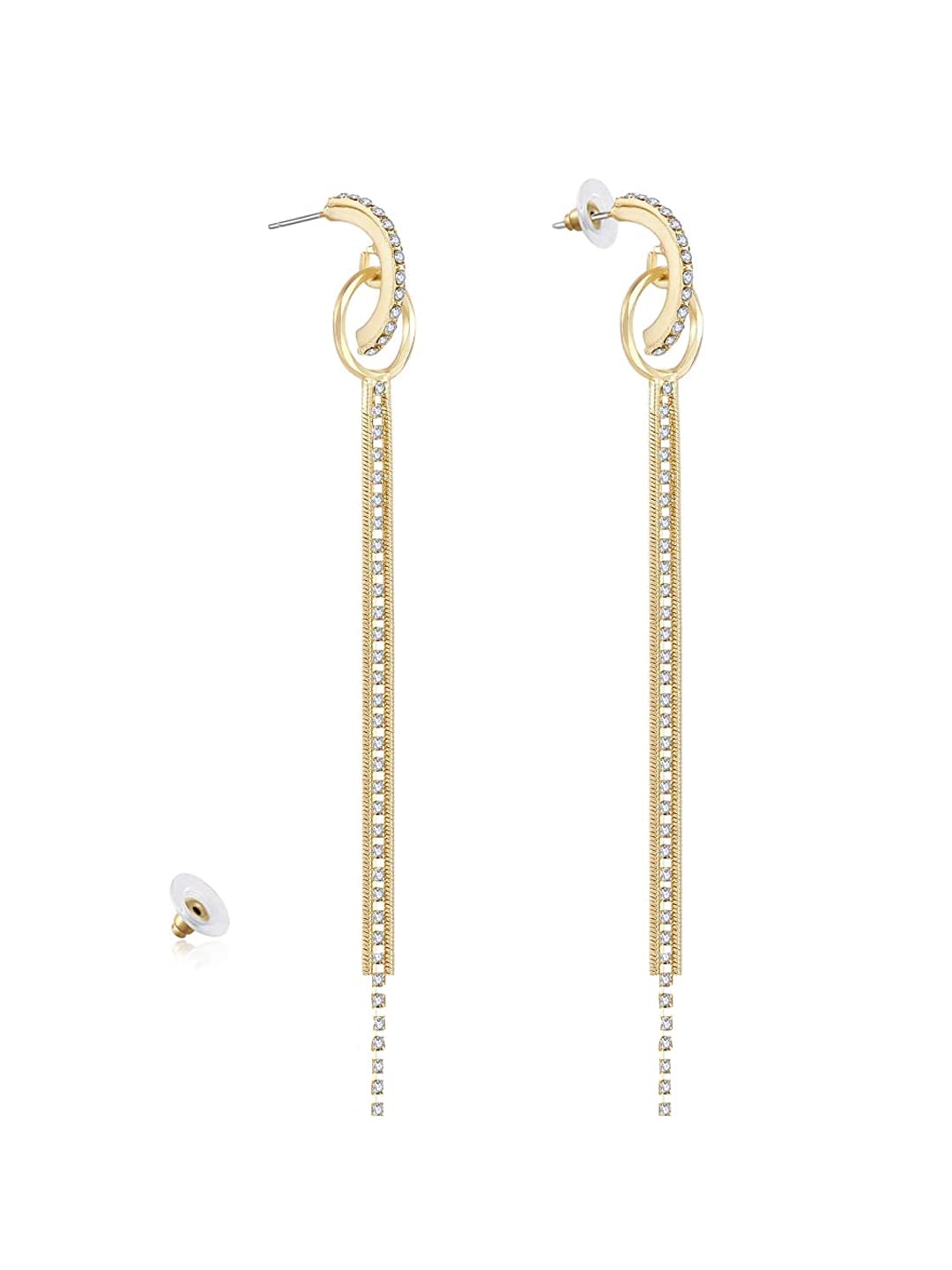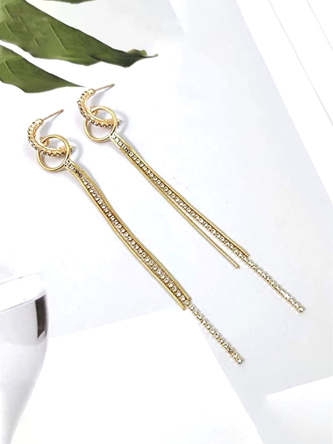 Earrings For Women Gold Tone Sparkling Crystal Studded Long Chain Dangler Earrings For Women and Girls
