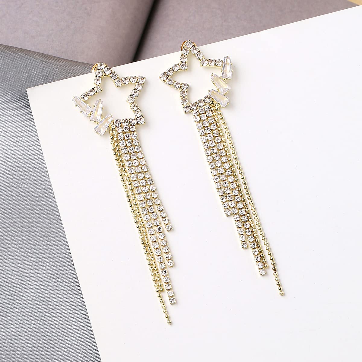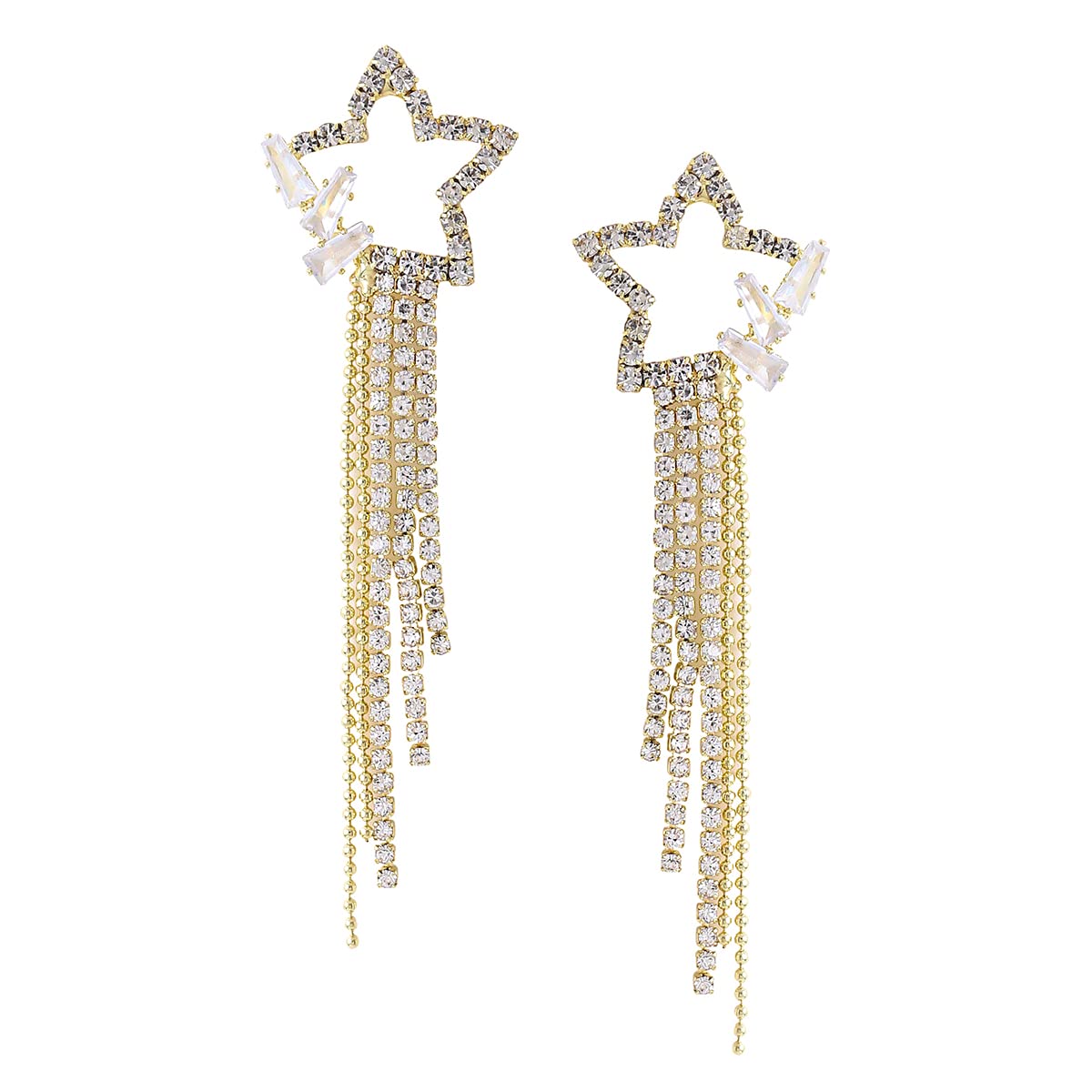 Earrings For Women Gold Tone Crystal Star Shape Long Chain Tassel Dangler Earrings For Women and Girls