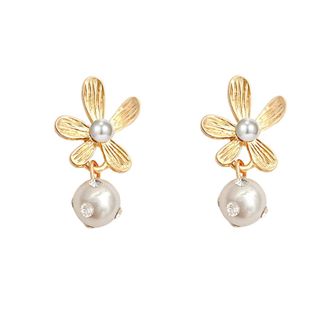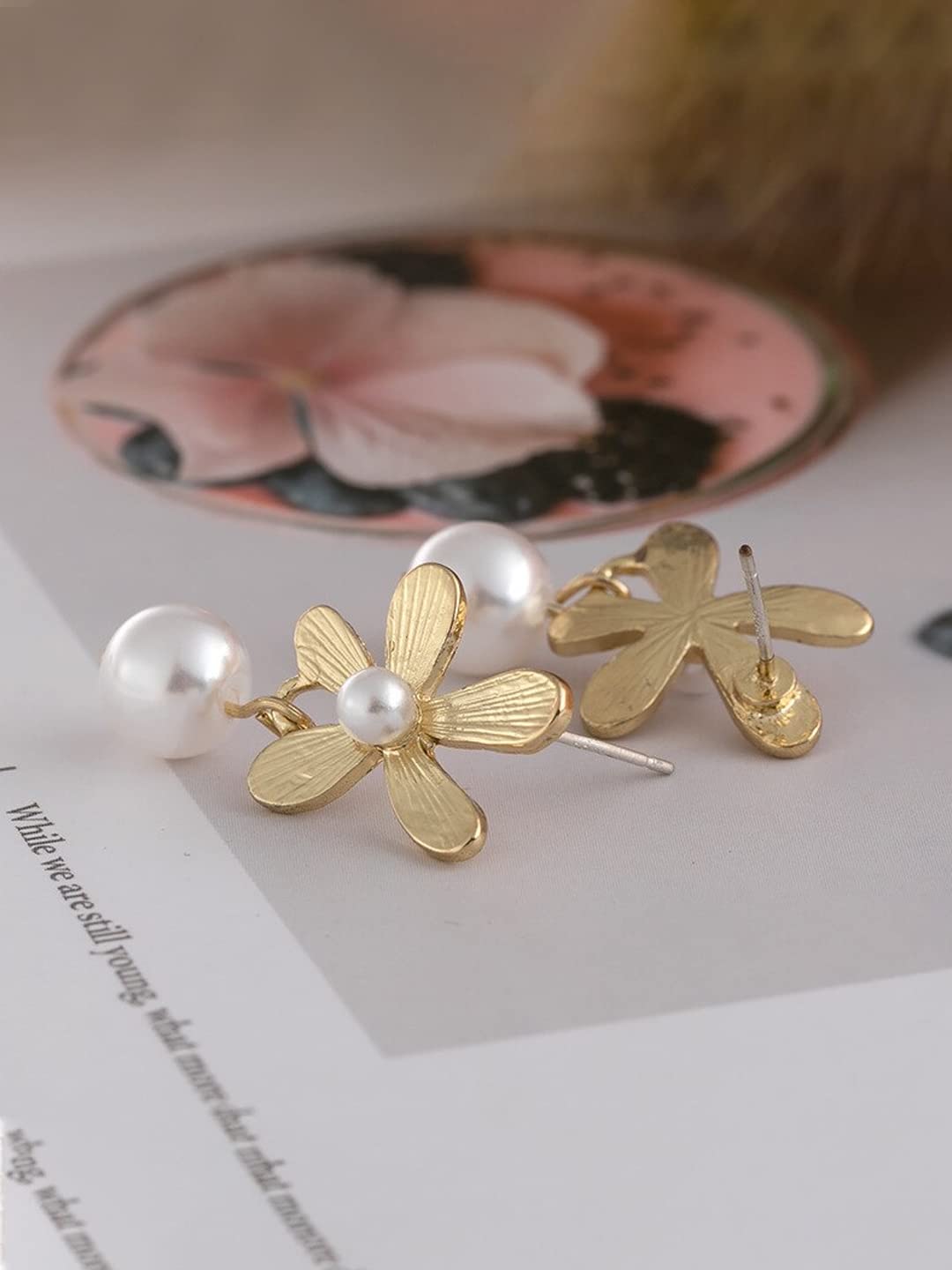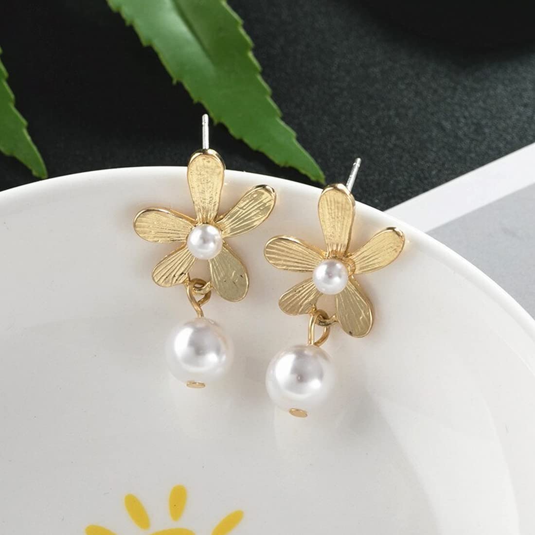 Earrings For Women Gold Tone Flower Designed Stud Pearl Hanging Drop Earrings For Women and Girls