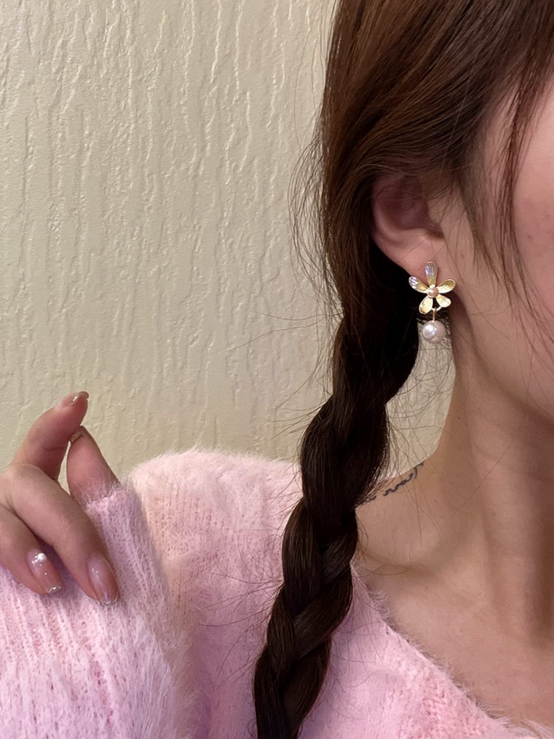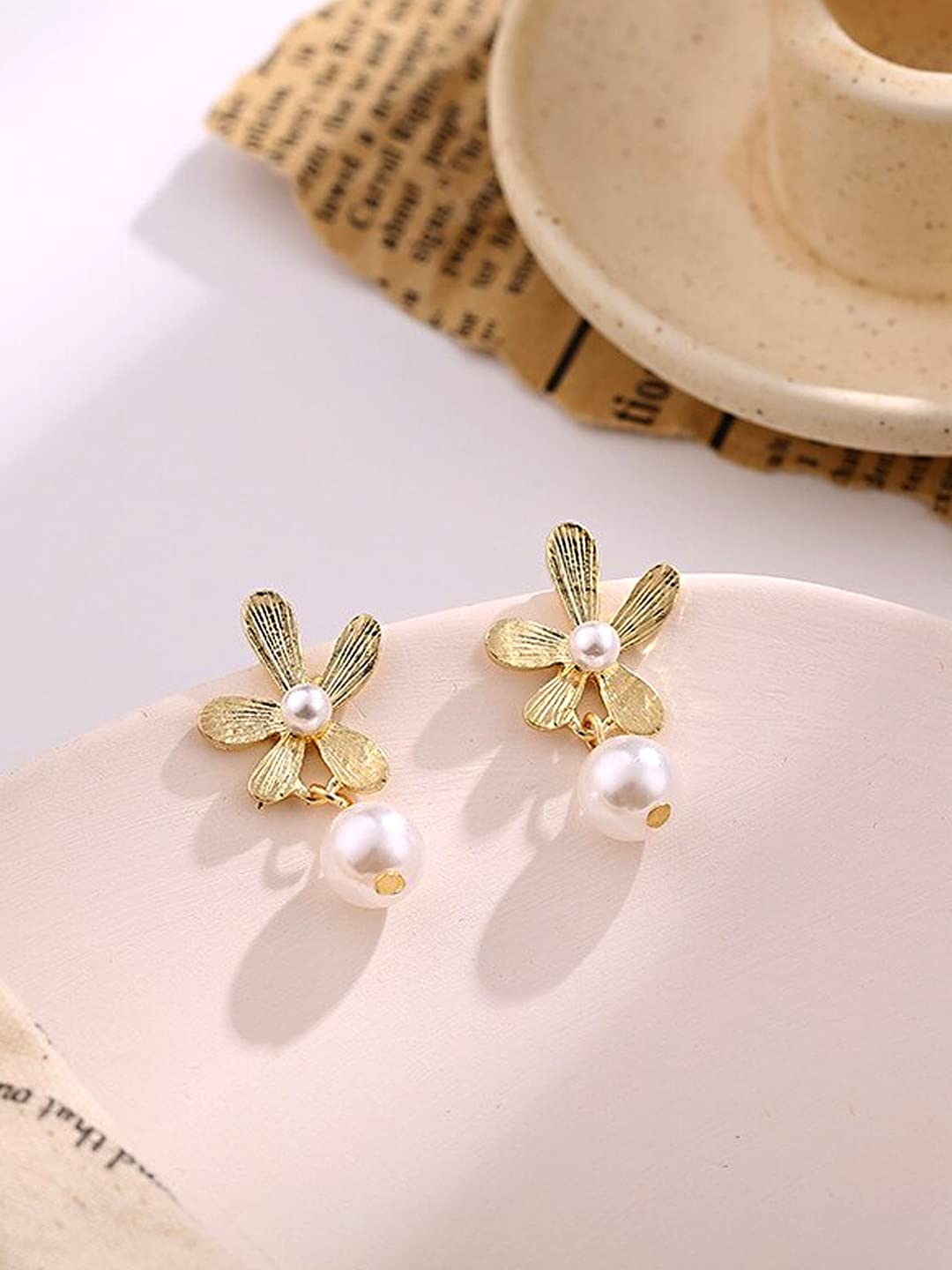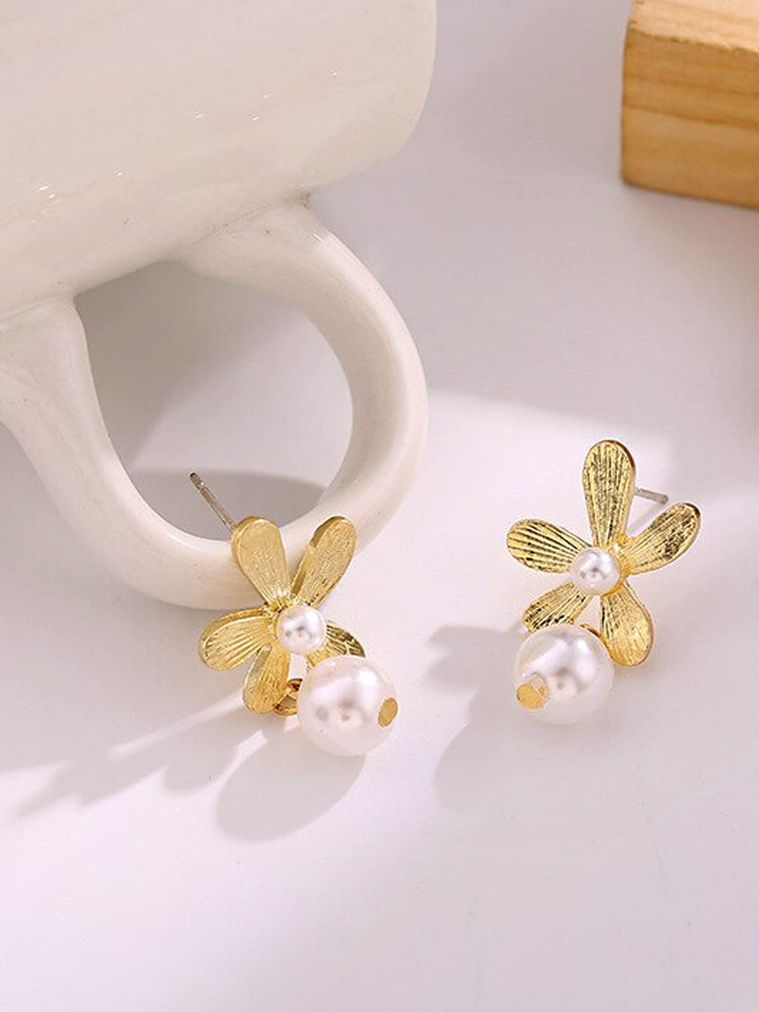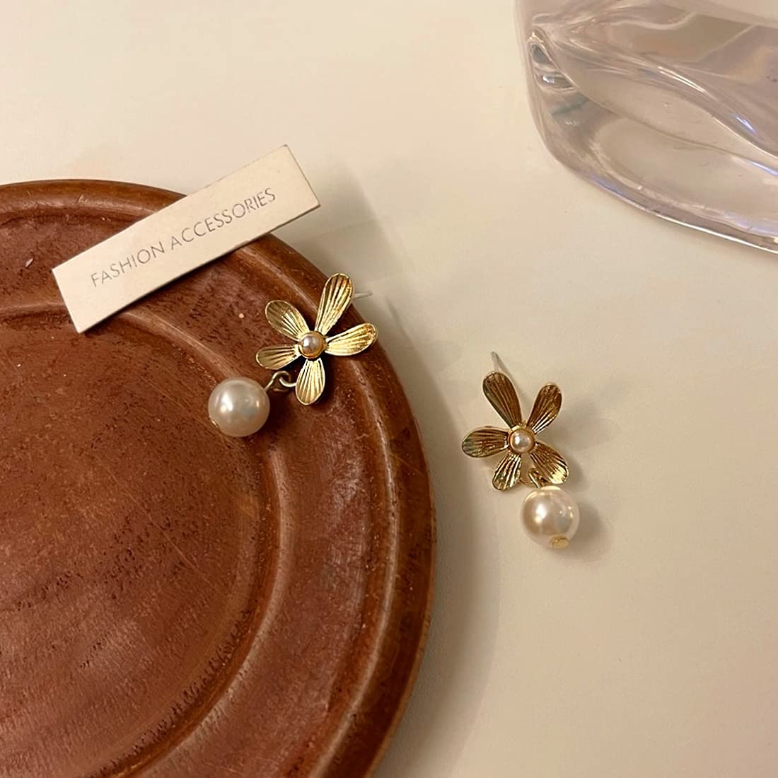 Earrings For Women Gold Tone Flower Designed Stud Pearl Hanging Drop Earrings For Women and Girls