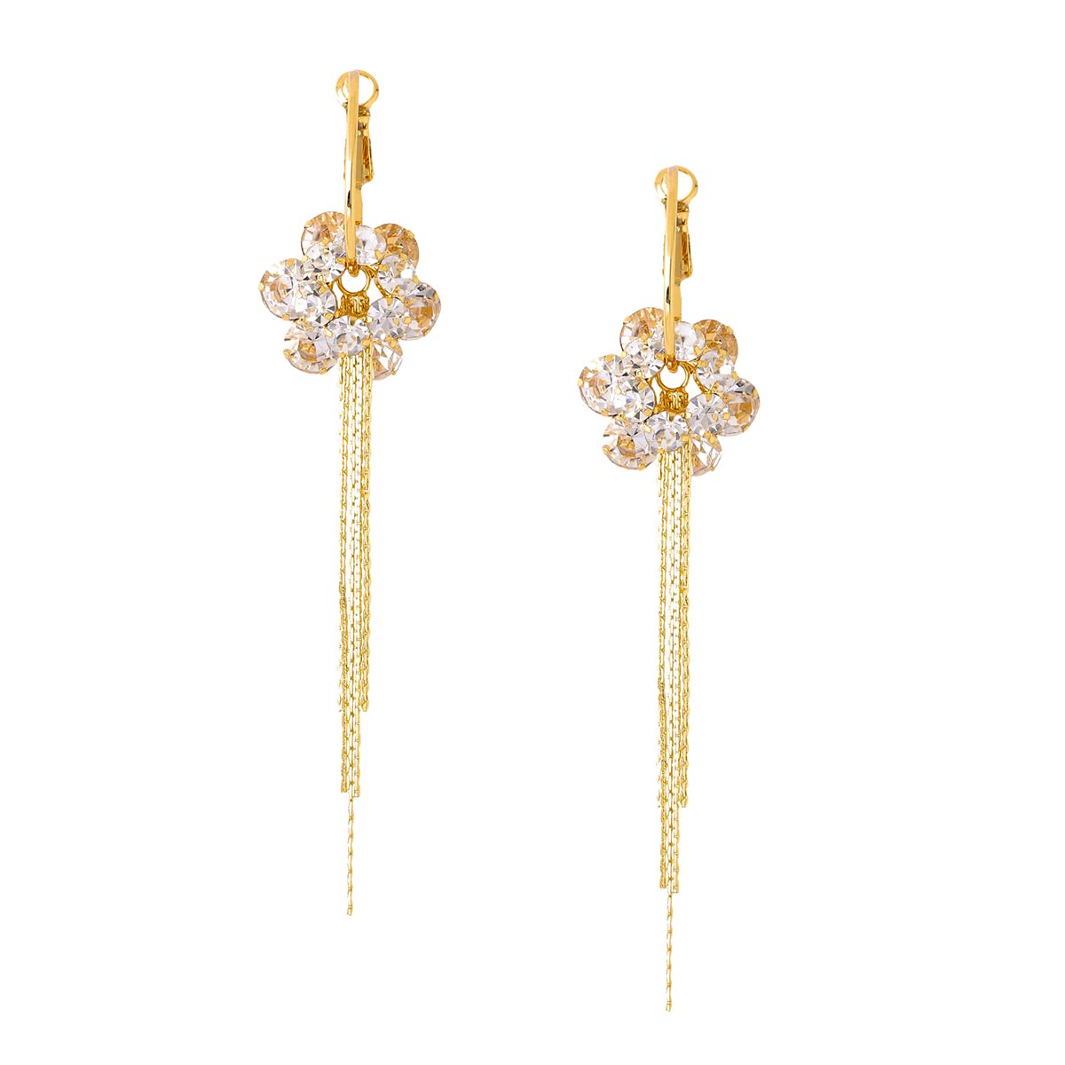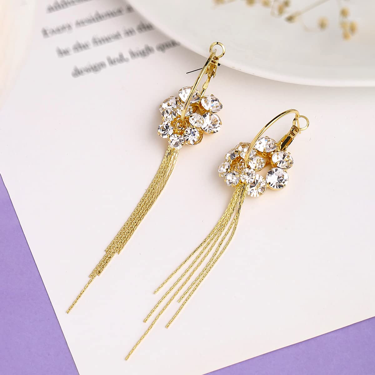 Earrings For Women Gold Tone Hoop With Attachable Flower Chain Fringes Dangler Earrings For Women and Girls
