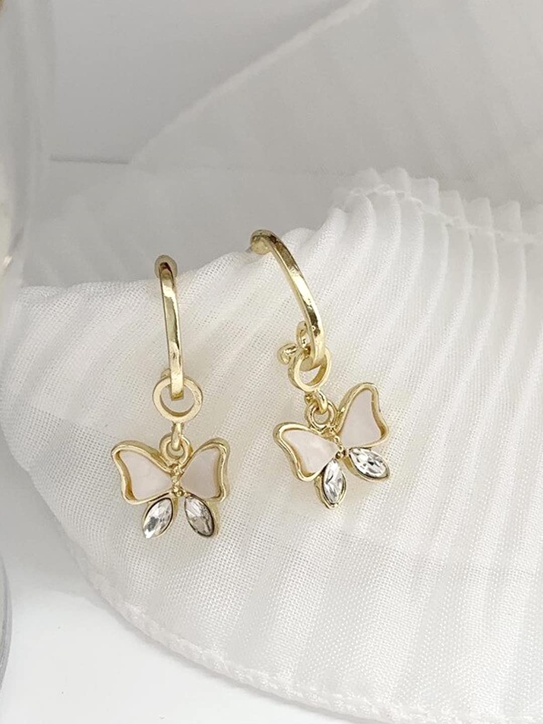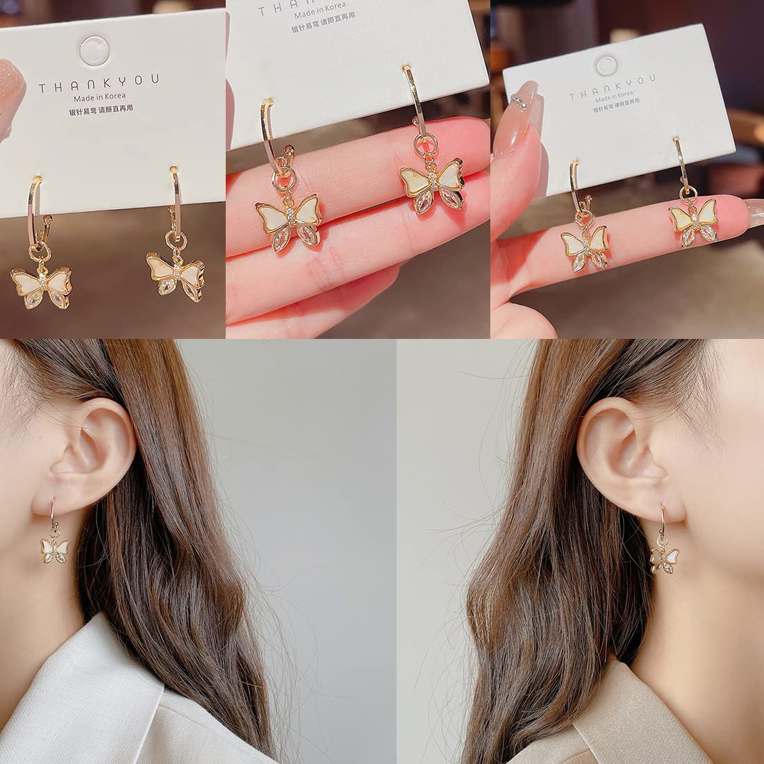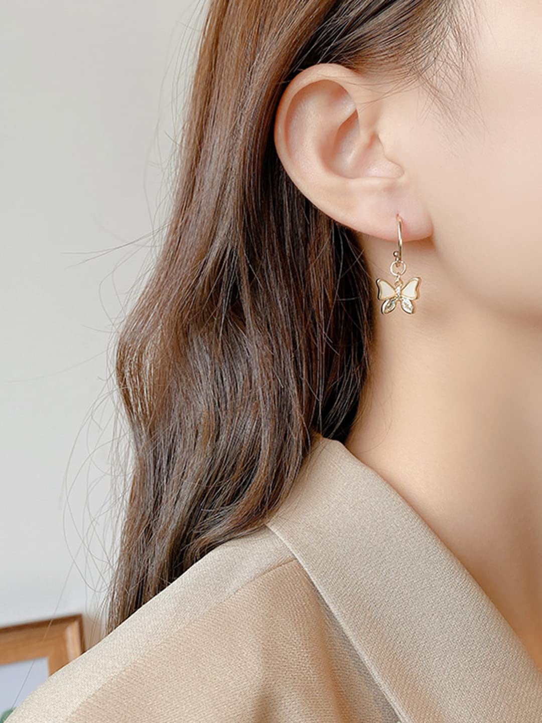 Earrings For Women Gold Tone Huggie Hoop Butterfly Charm Hanging Drop Earrings For Women and Girls