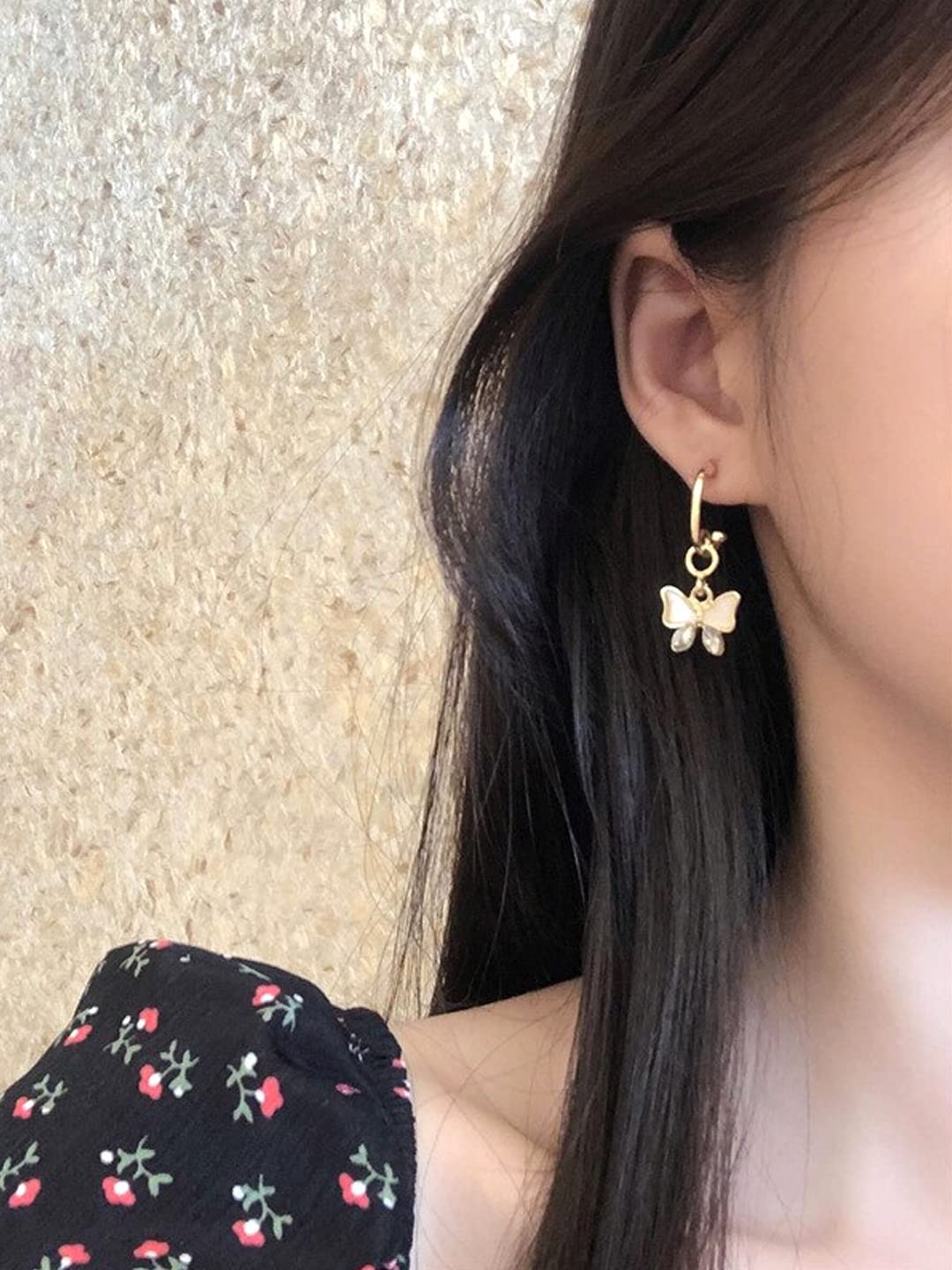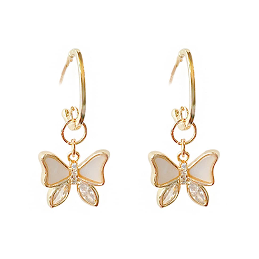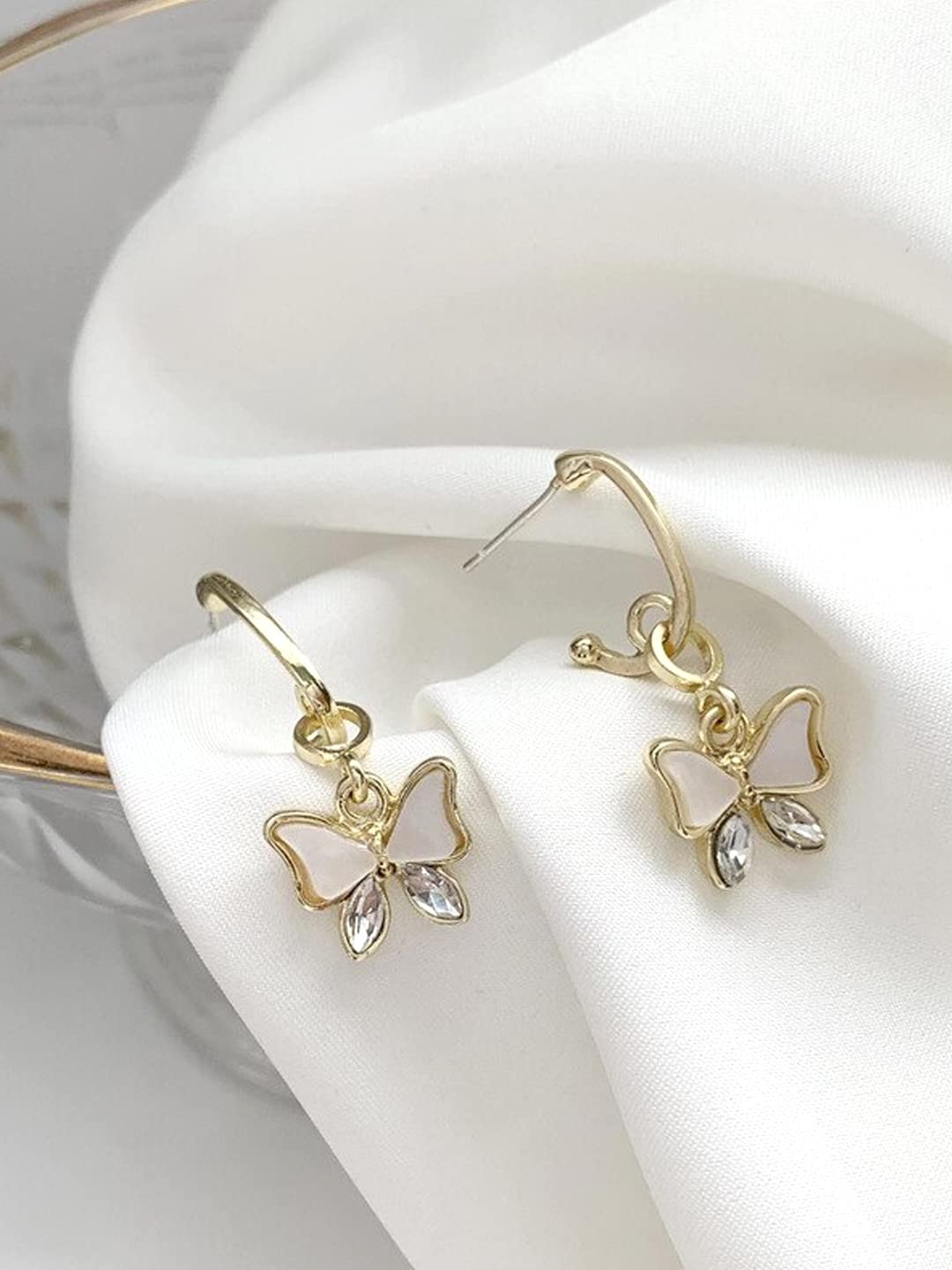 Earrings For Women Gold Tone Huggie Hoop Butterfly Charm Hanging Drop Earrings For Women and Girls