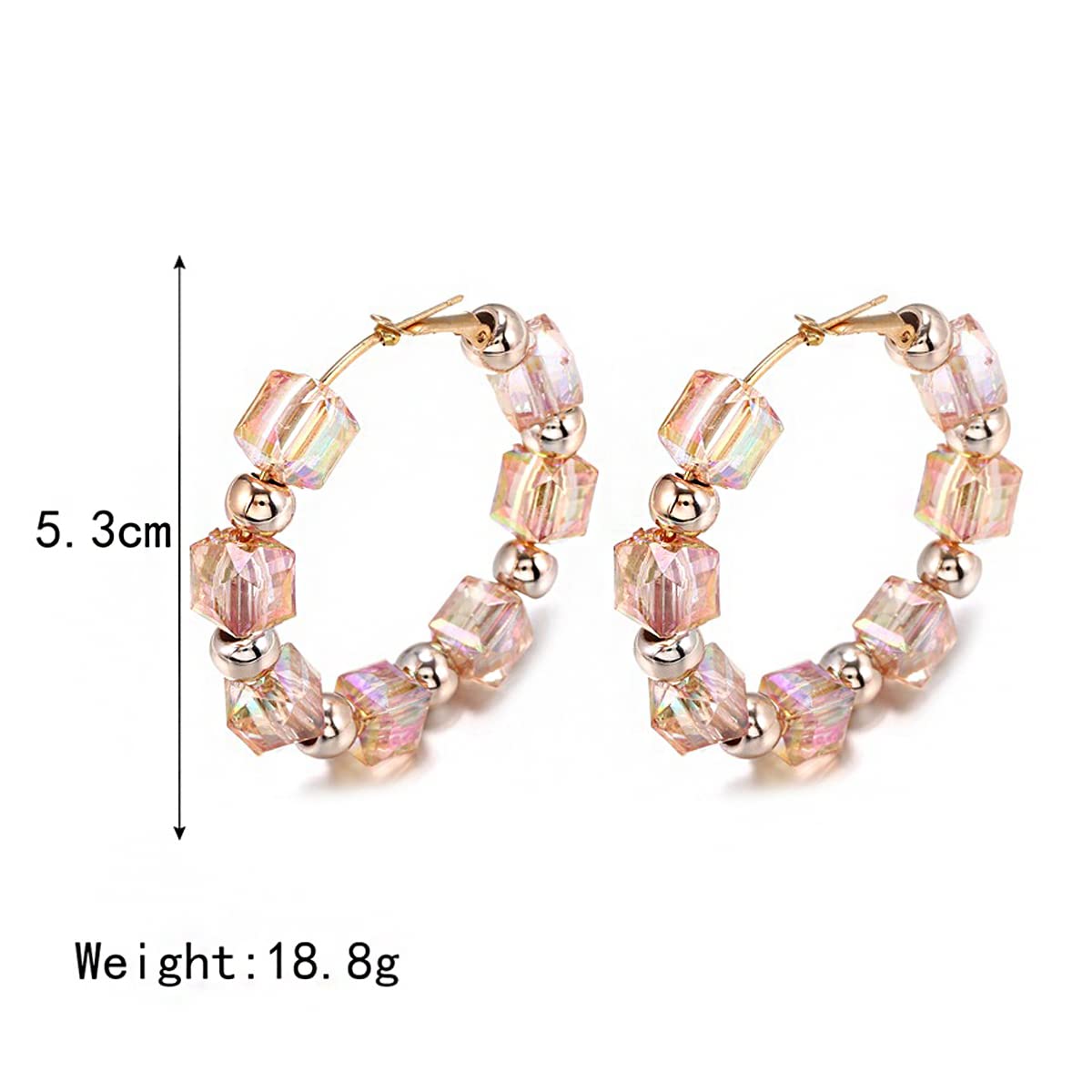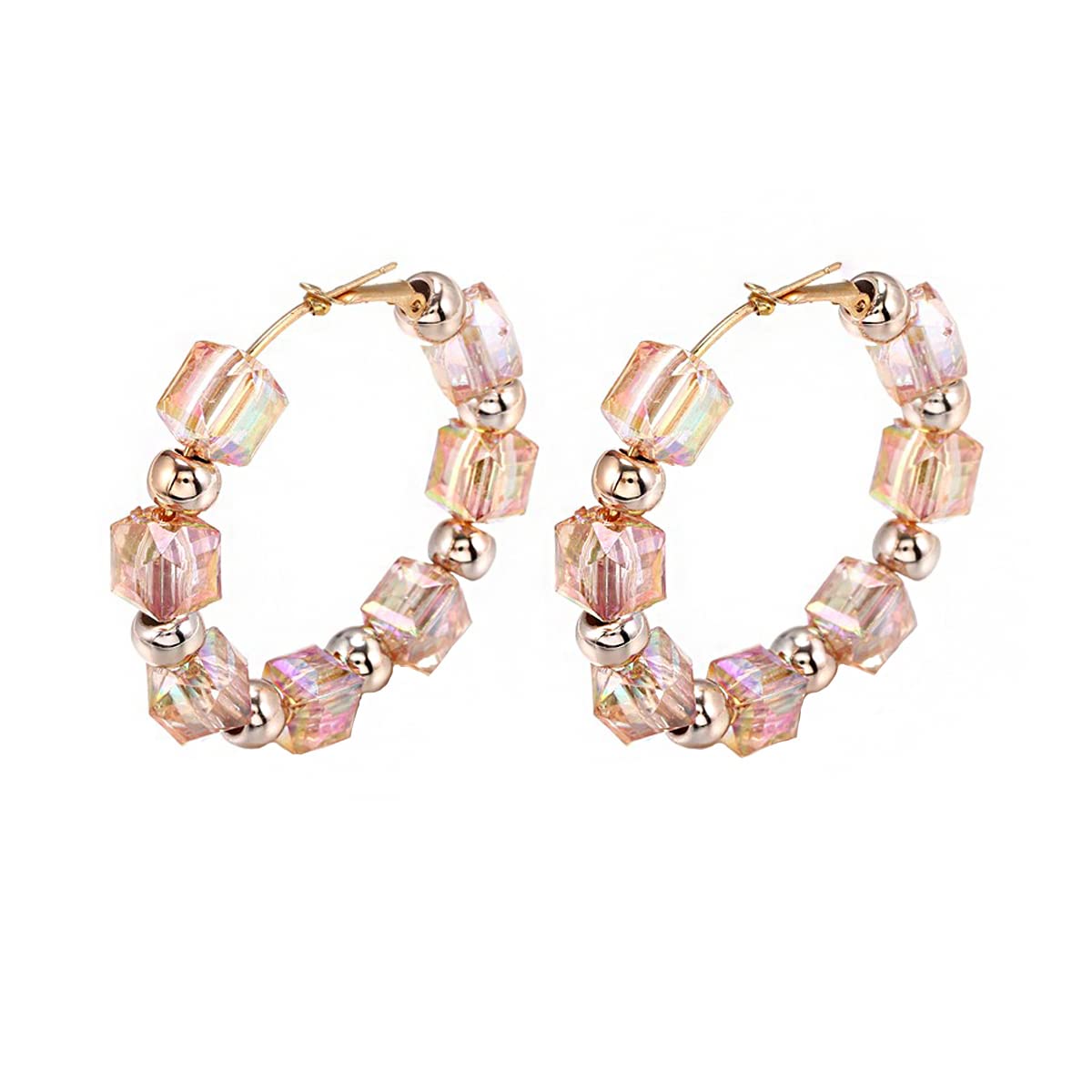 Earrings For Women Gold Tone Pink Crystal Studded Hoop For Women and Girls