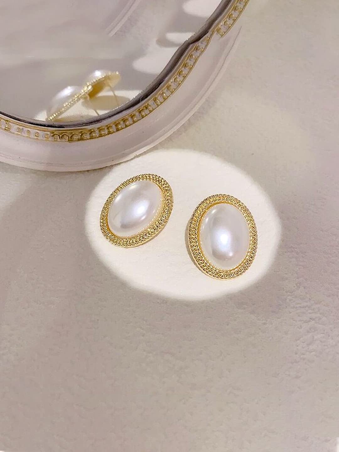 Discover the perfect blend of elegance and contemporary design with our Gold Toned Elegant Oval Shape Pearl Stud Earrings. Crafted for women and girls who love to make a statement, these earrings are not just accessories, but a reflection of your unique personality.