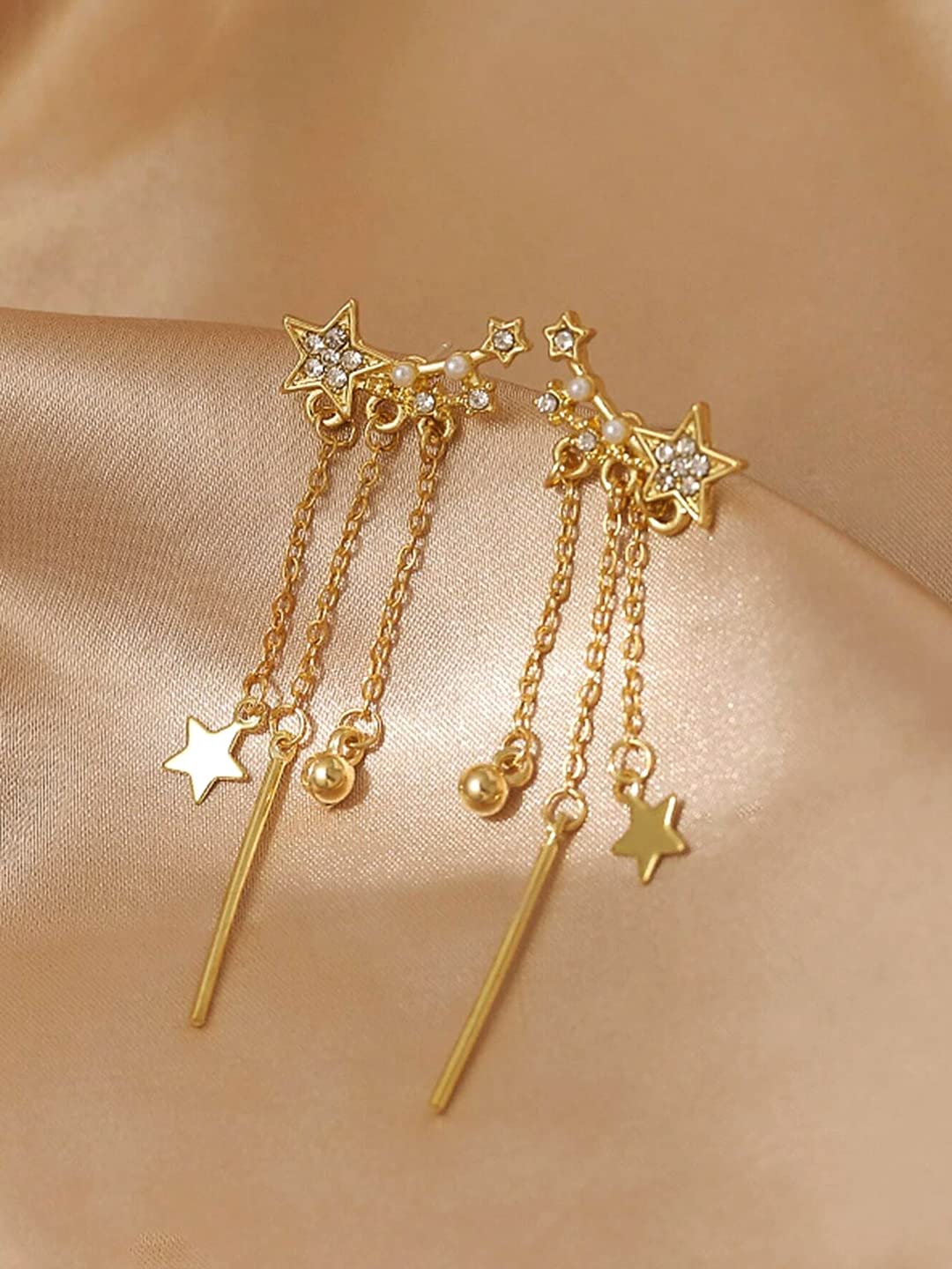 Earrings For Women Gold Toned Crystal Stud Chain Hanging Drop Danglers Earrings For Women and Girls