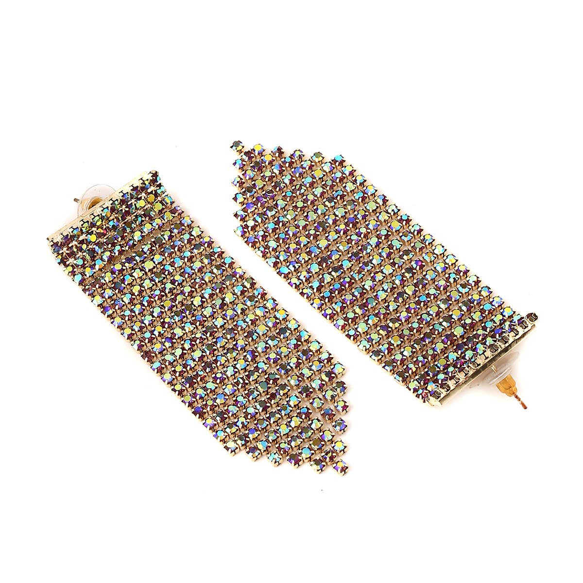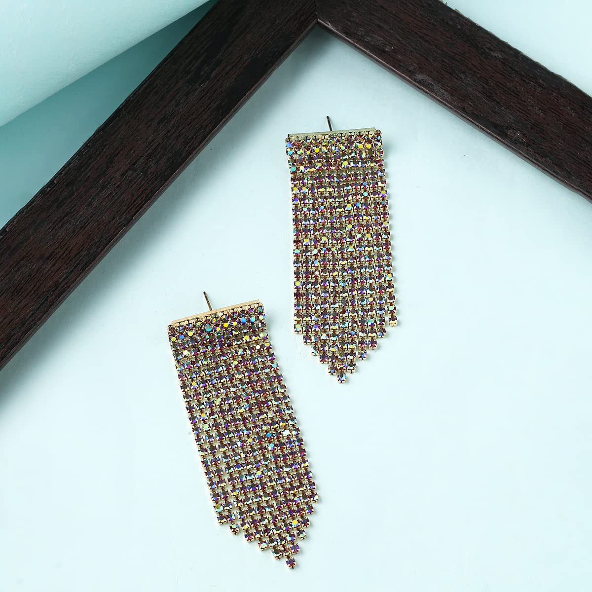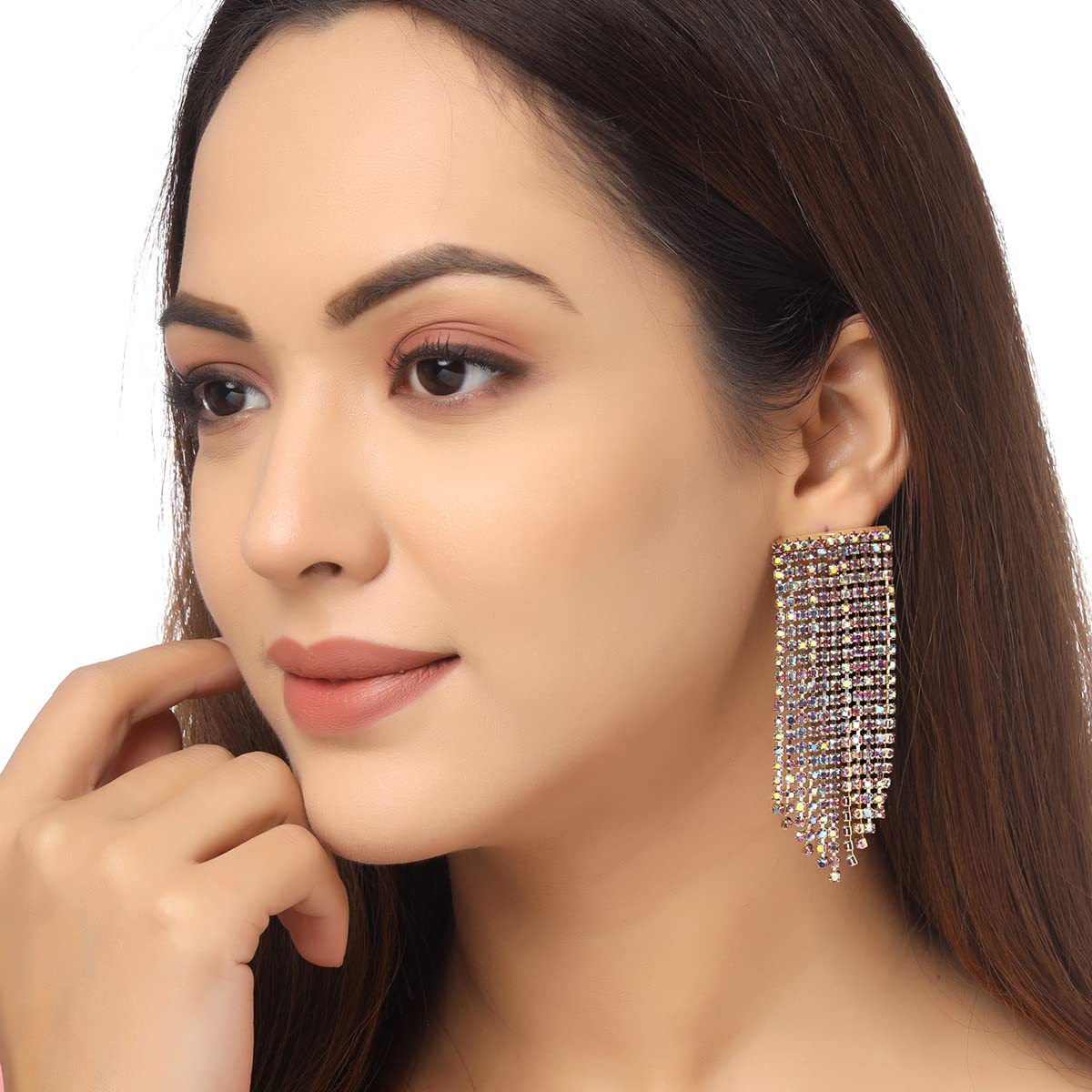 Earrings For Women Gold Toned Sparkling Crystal Studded Linear Chain Dangling Earrings For Women and Girls