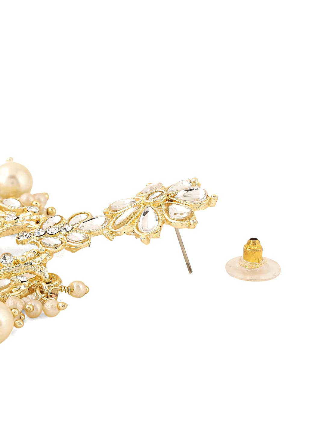 Earrings for Women Gold Toned Kundan Studded Pearl Drop Chandbali Designed Drop Earrings for Women and Girls