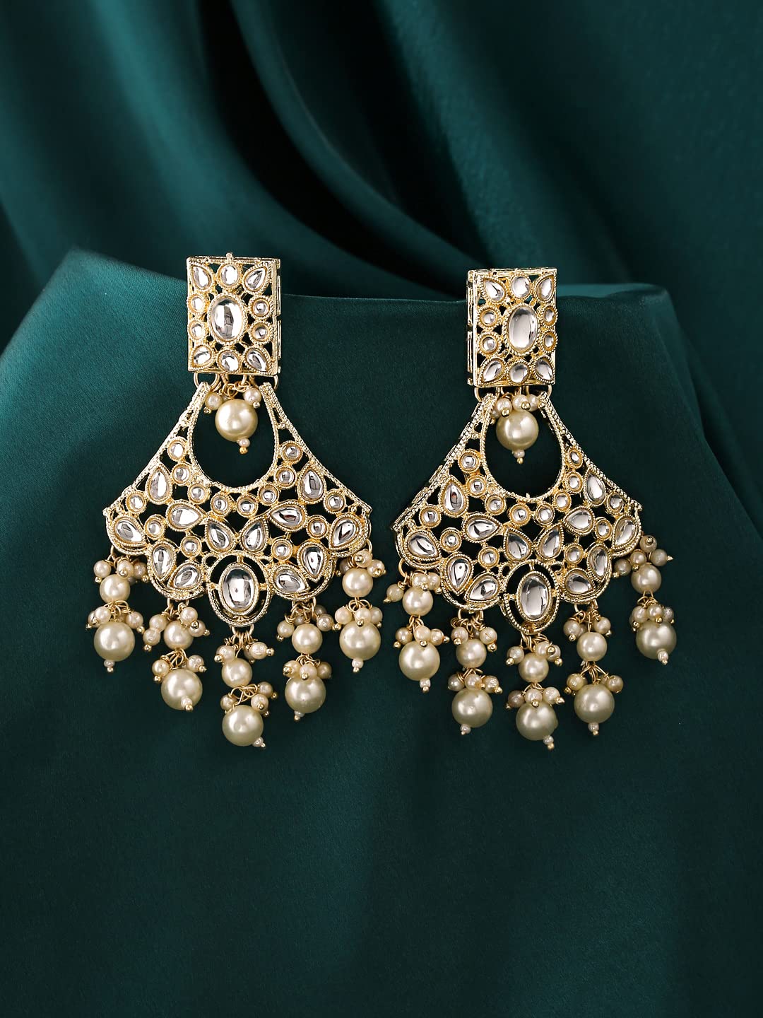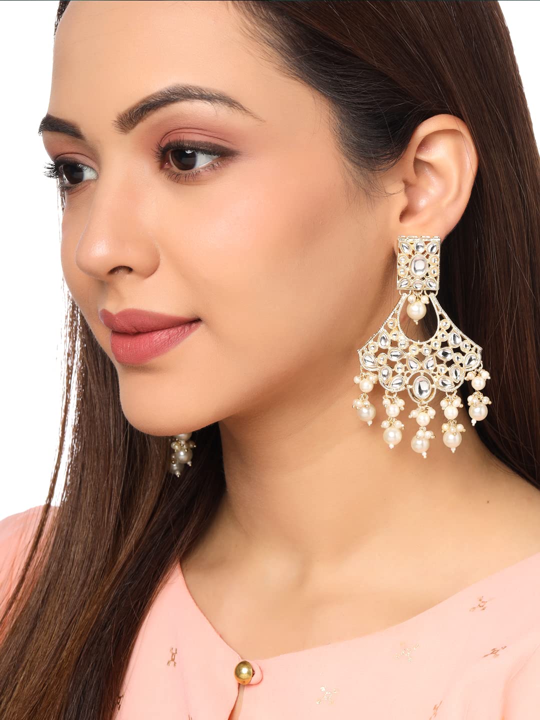 Earrings for Women Gold Toned Kundan Studded Multilayer Pearl Drop Dangler Earrings for Women and Girls