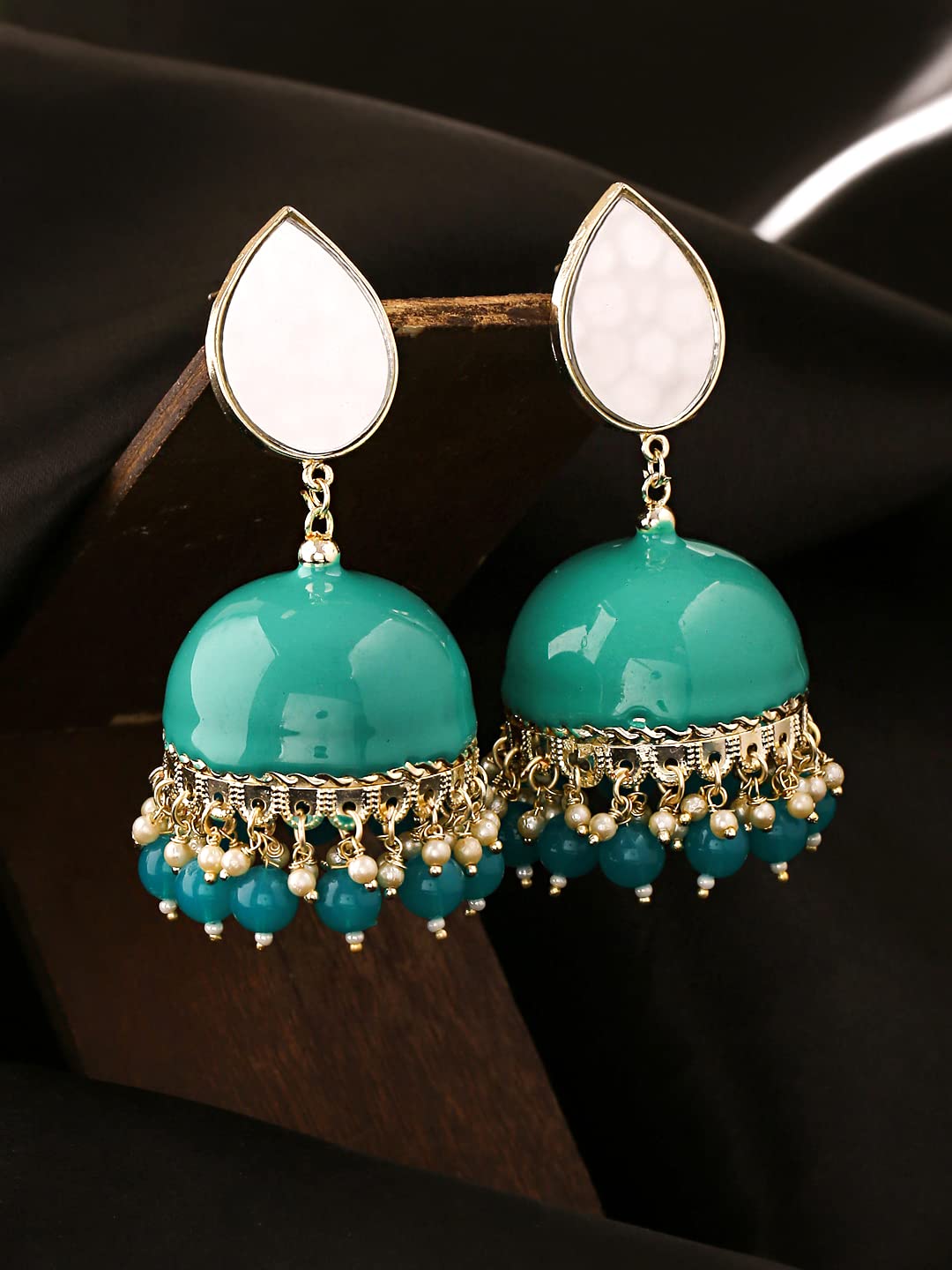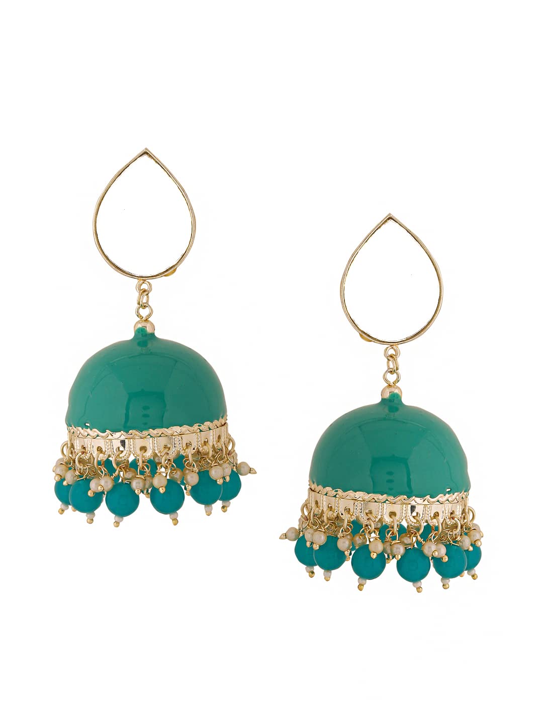 Earrings for Women Gold Toned Pearl Drop Mirror Finished Green Meenakari Jhumka Earrings for Women and Girls