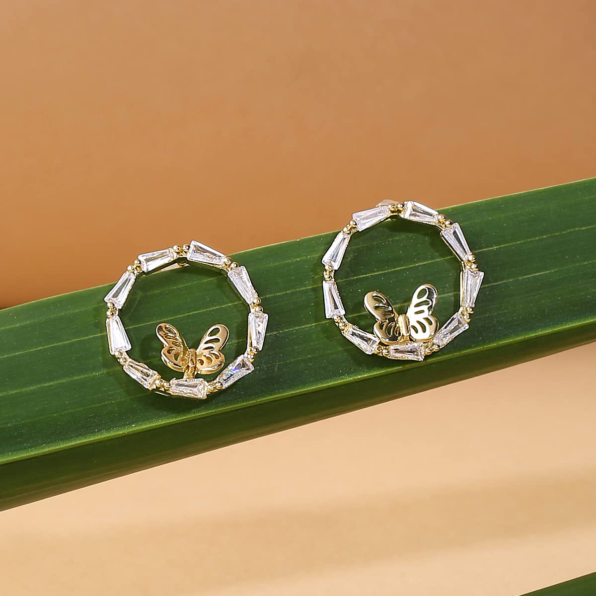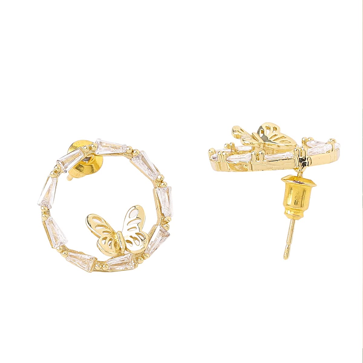Earrings For Women Gold Toned Round Hoop With Butterfly Embellished Earrings For Women and Girls