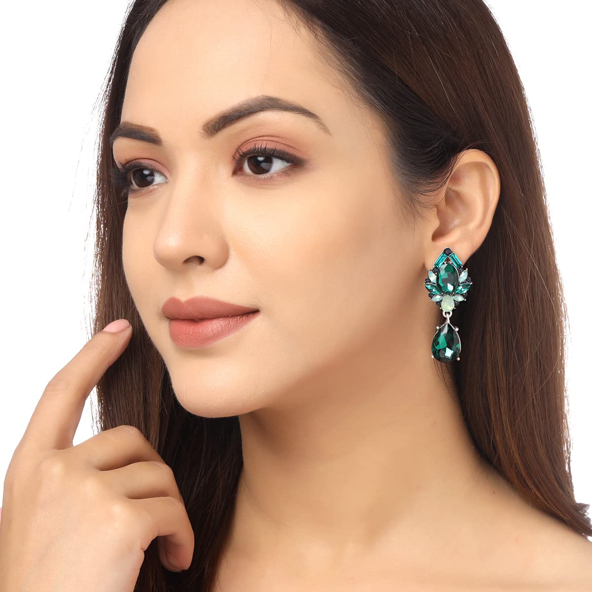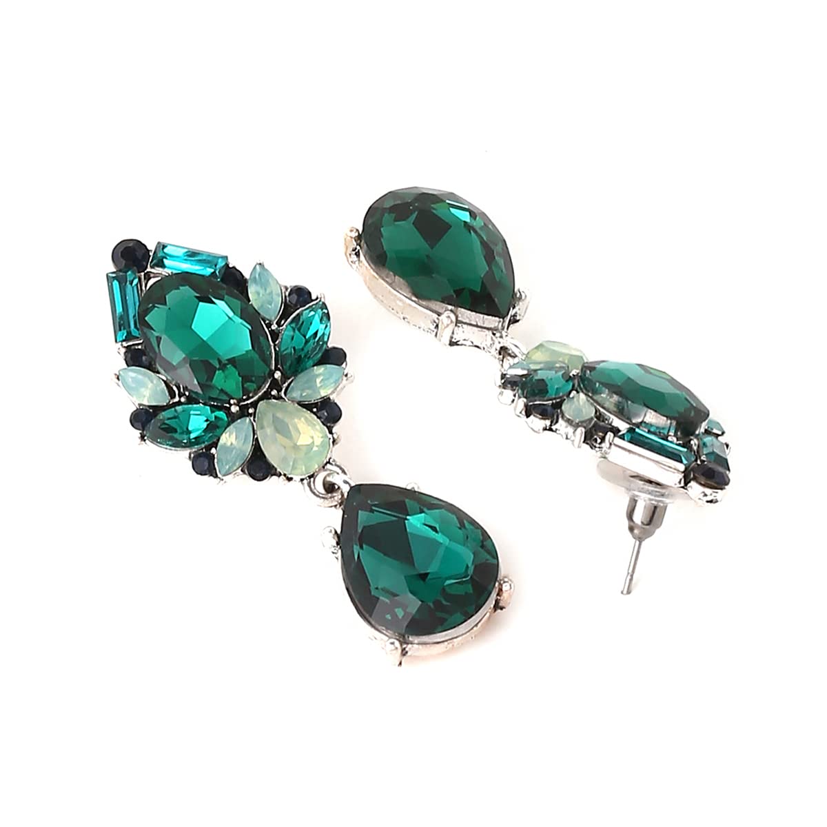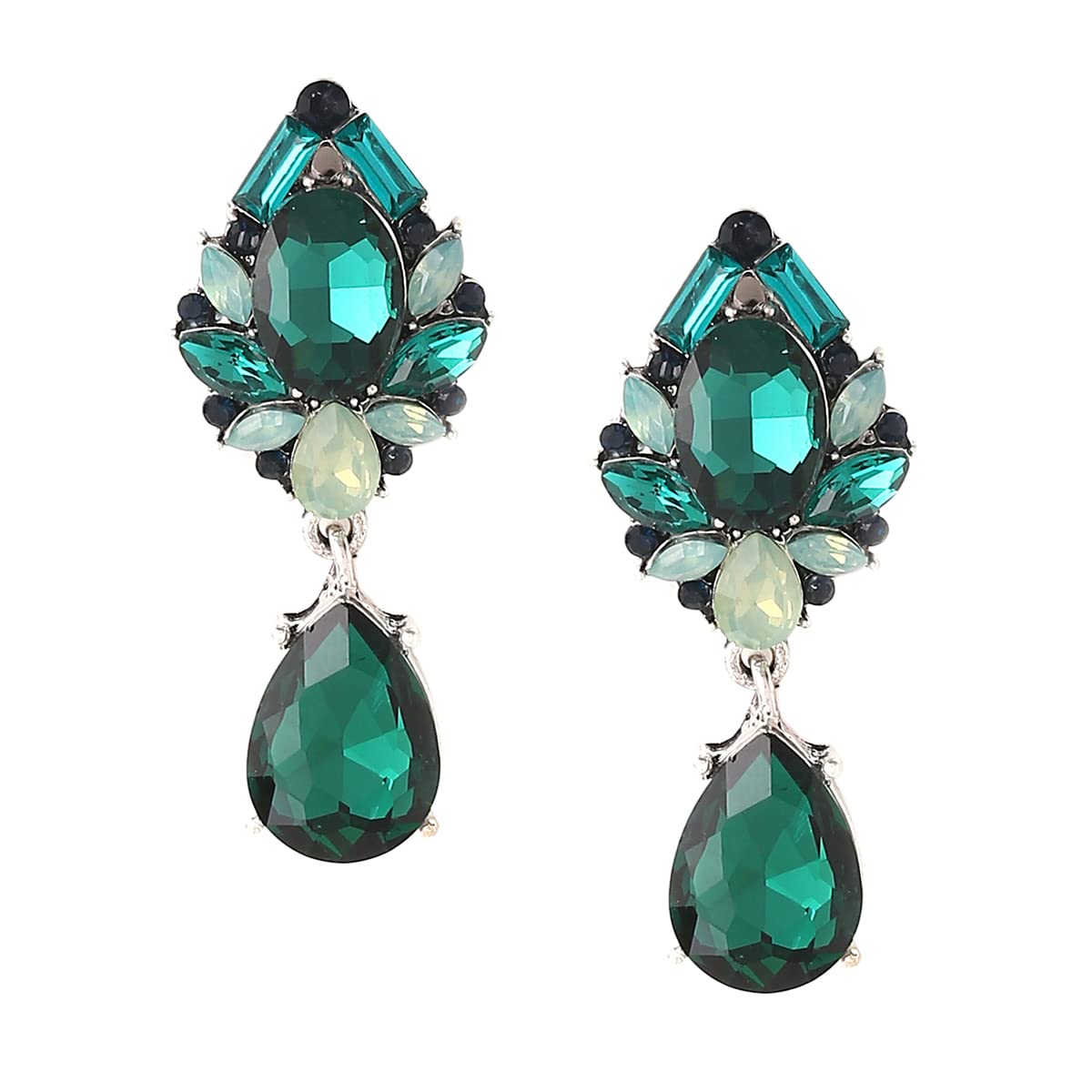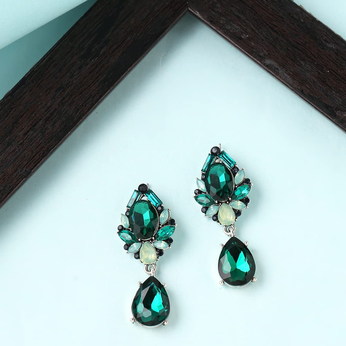 Earrings For Women Green Crystal Studded Tear Drop Shape Earrings For Women and Girls