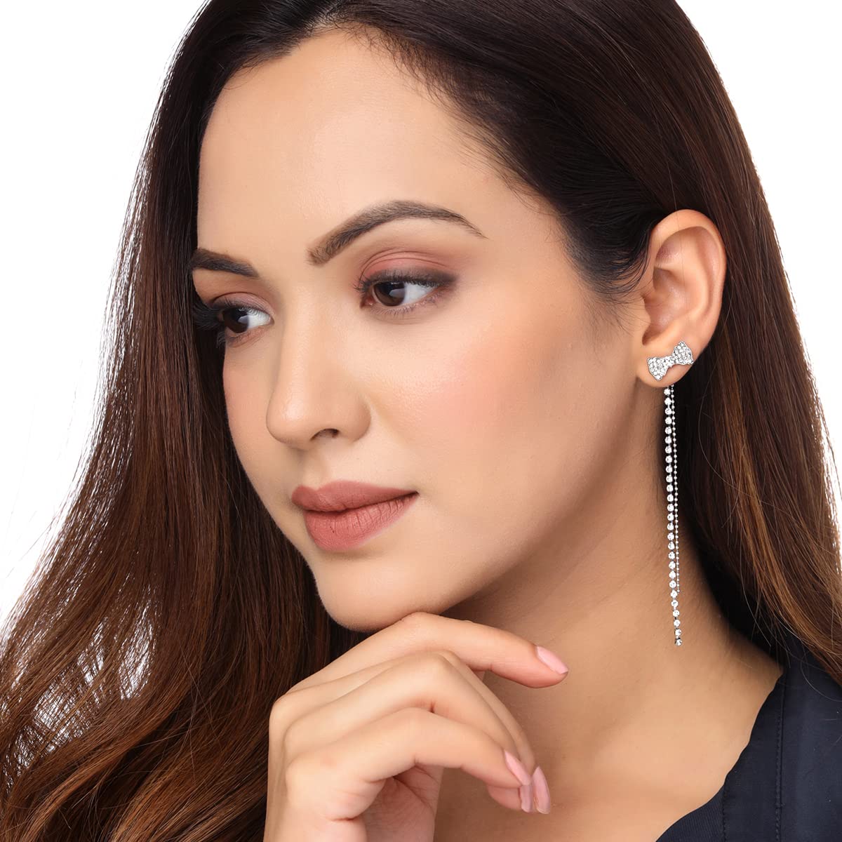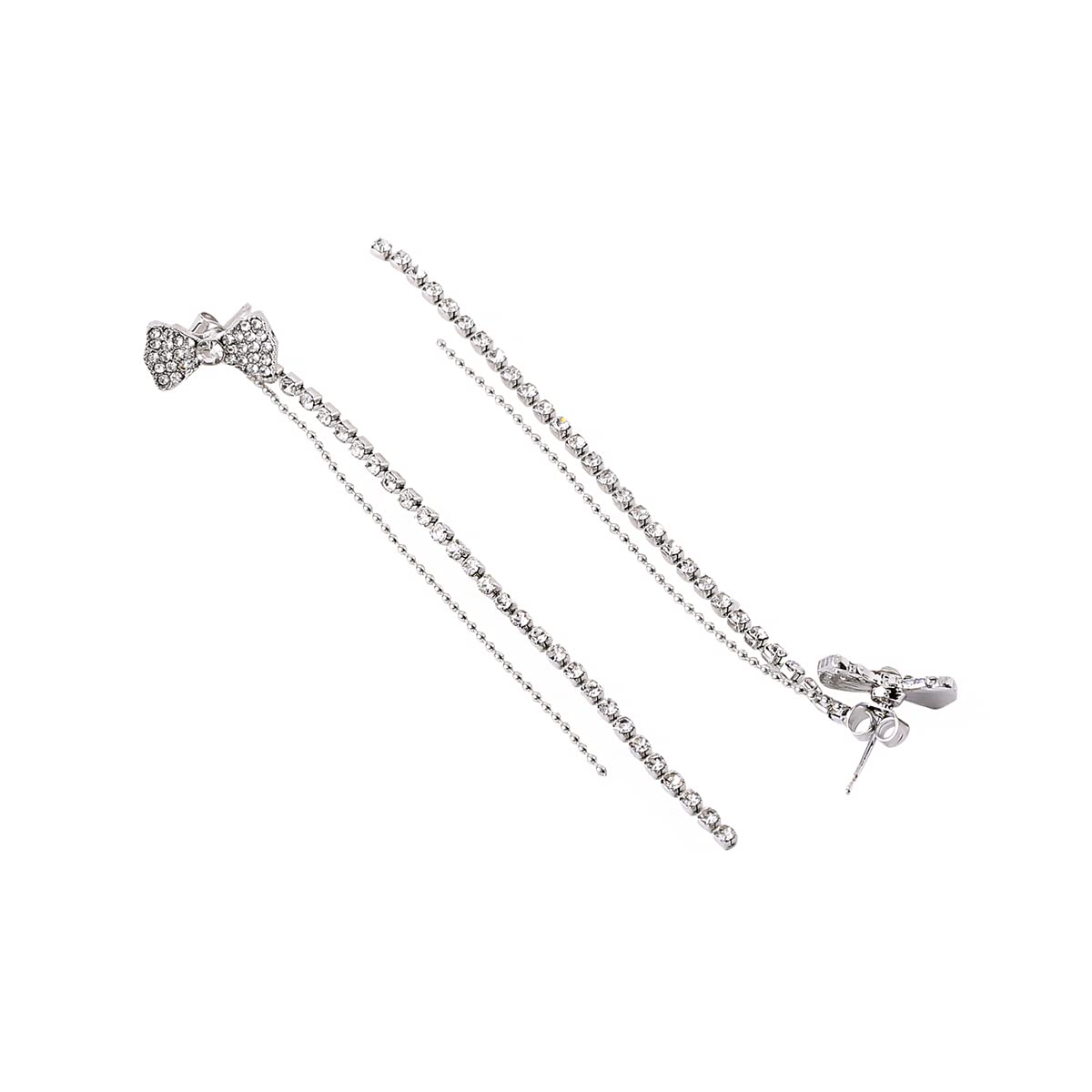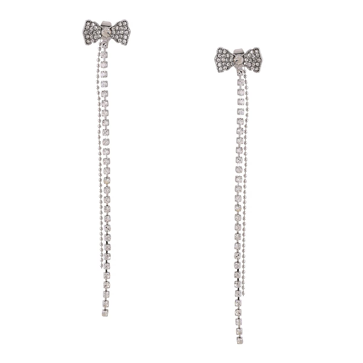 Earrings For Women Silver Tone Crystal Studded Bow Shape Back Drop Dangle Earrings For Women and Girls