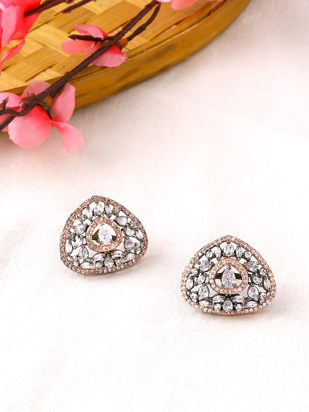- If you want to steal the attention with a single piece of accessory, these are the earrings are perfect for you! American Diamond Studded Classic Stud Earrings- An ethnic yet Contemporary catch in its Design, that can be worn on any Occasion to boost up your Attire Looks.