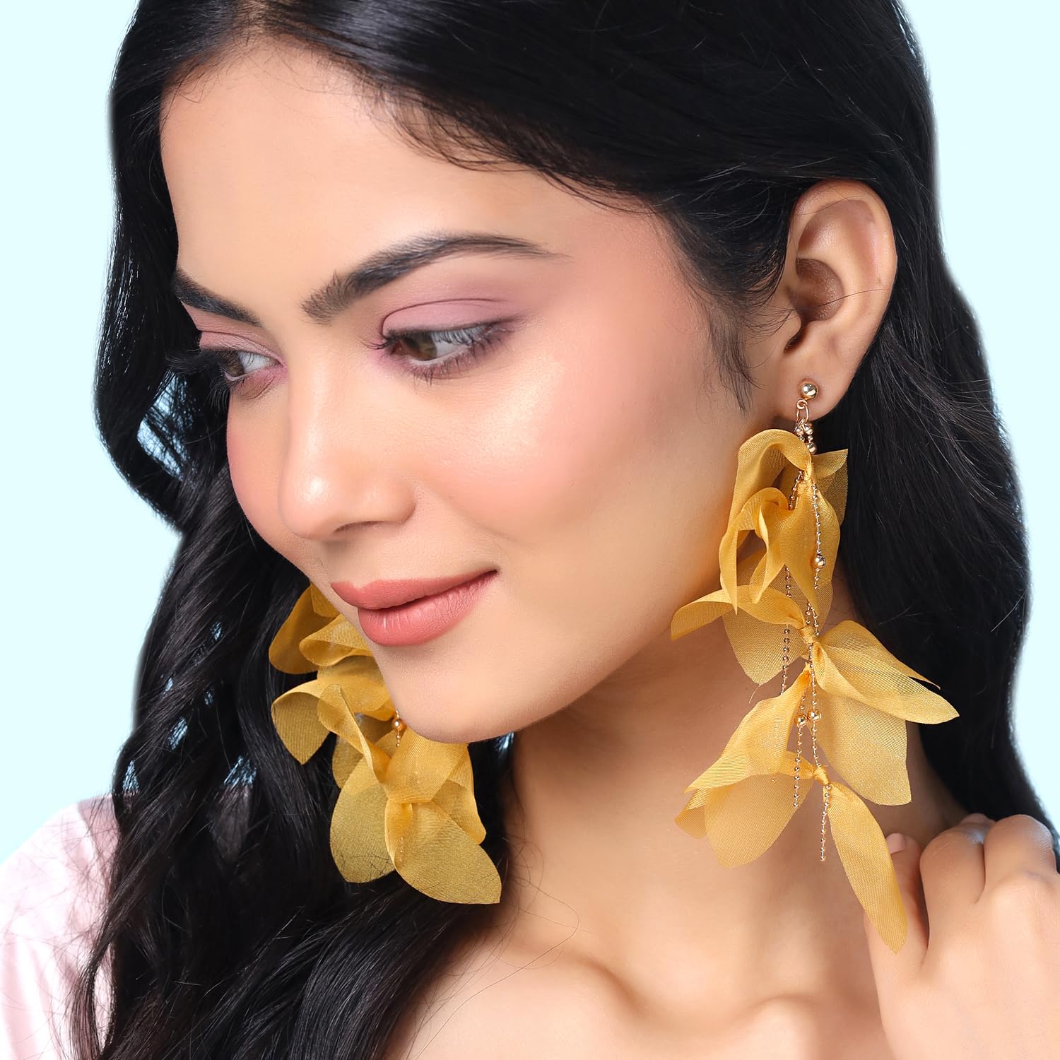 Earrings For Women Yellow color Petal Shape Designed Long Drop Dangler Earrings For Women and Girls