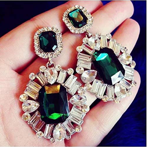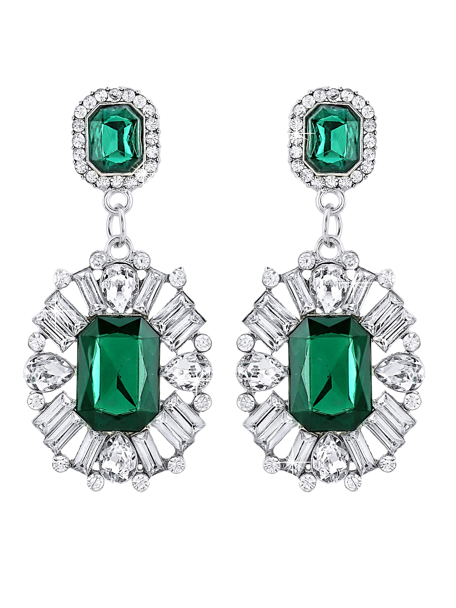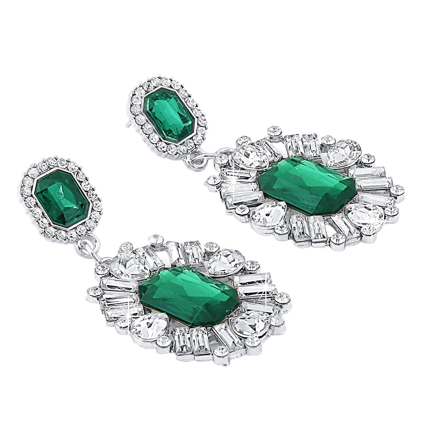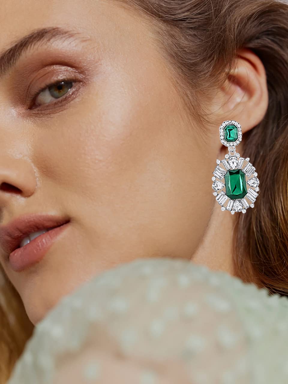 Elegant Crystal Sparkling Floral Design Emerald Green Chandelier Drop Earrings for Women and Girls