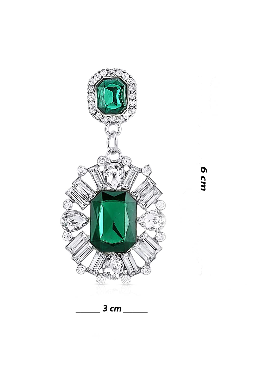 Yellow Chimes Elegant Crystal Sparkling Floral Design Emerald Green Chandelier Drop Earrings for Women and Girls