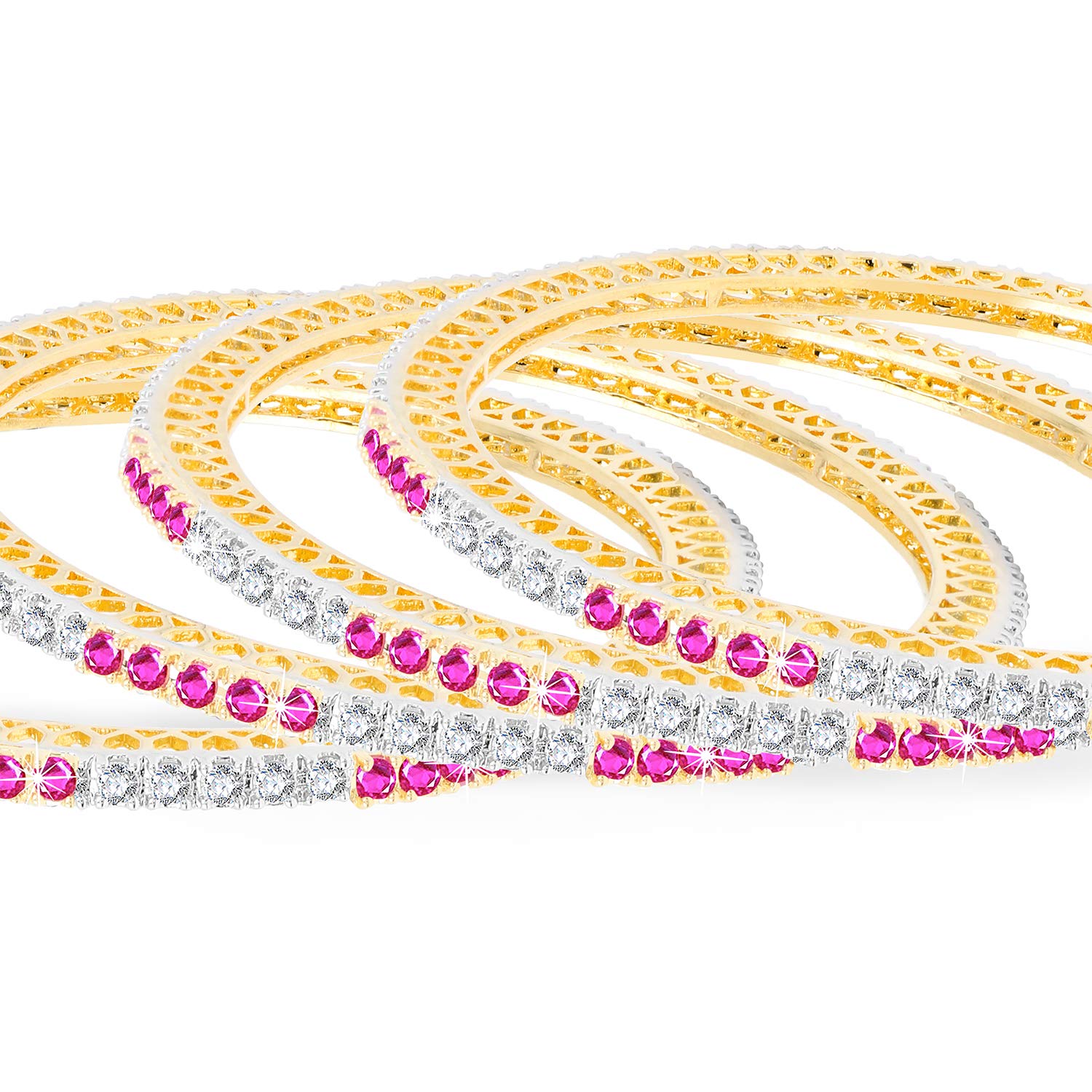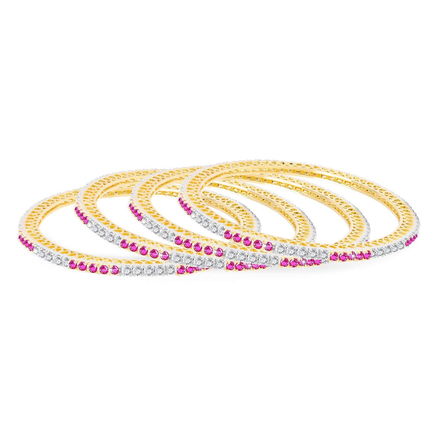 Elegant Pink AD/American Diamond Studded 18k Gold Plated Classic 4 PCs Handcrafted Bangles Set for Women & Girls (2.6)