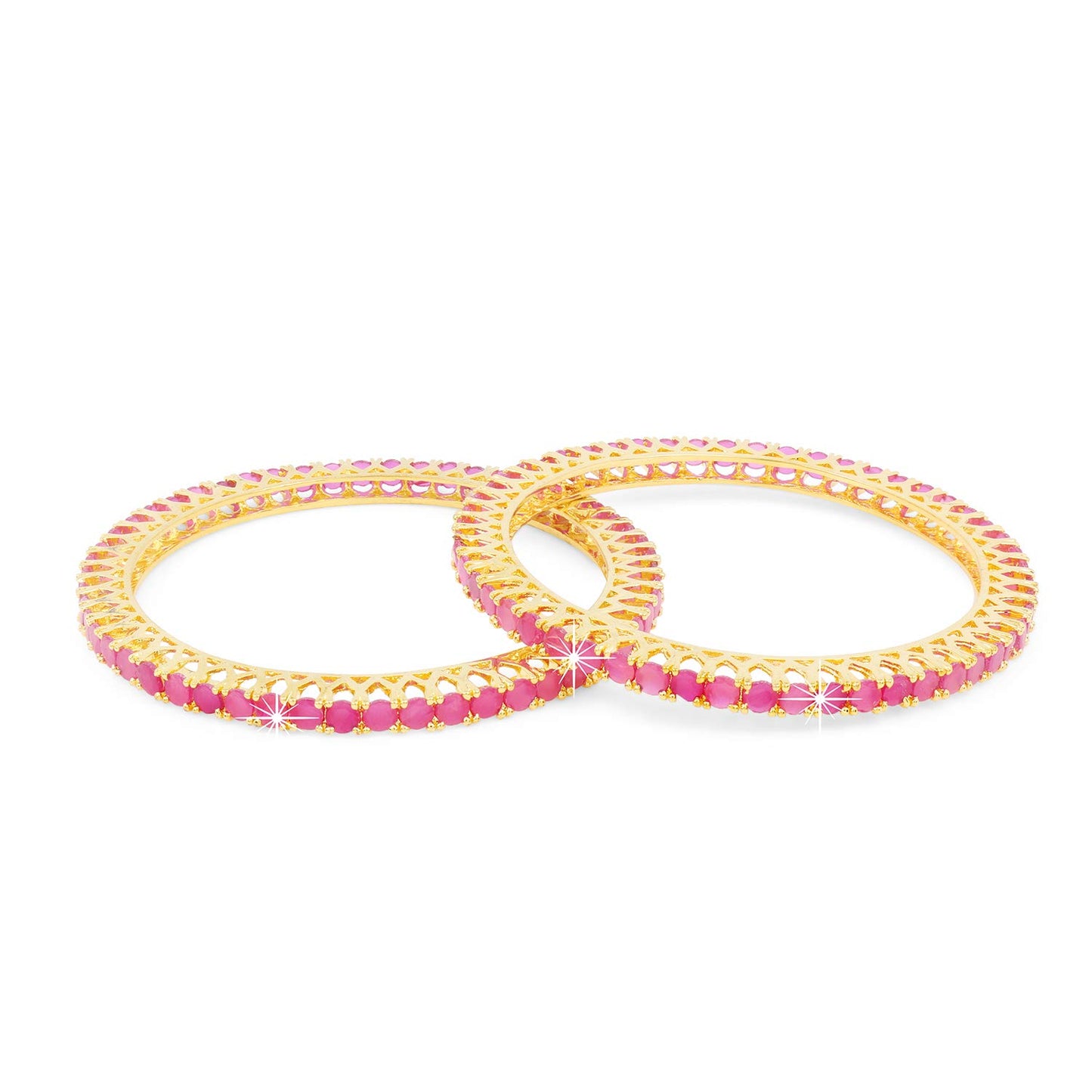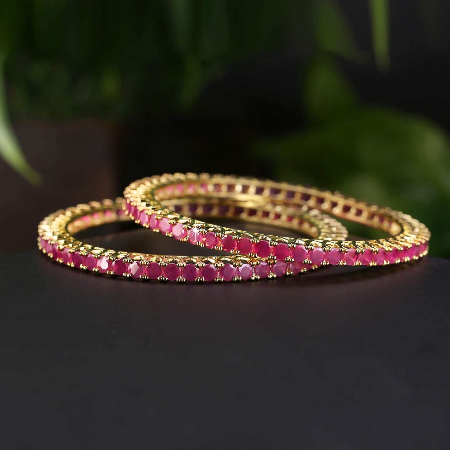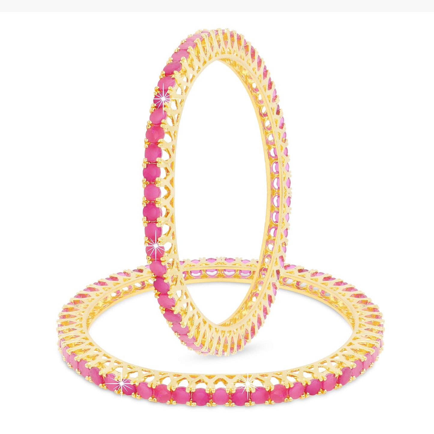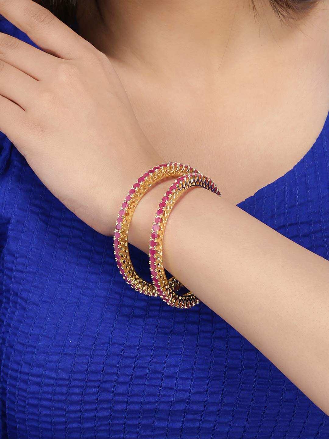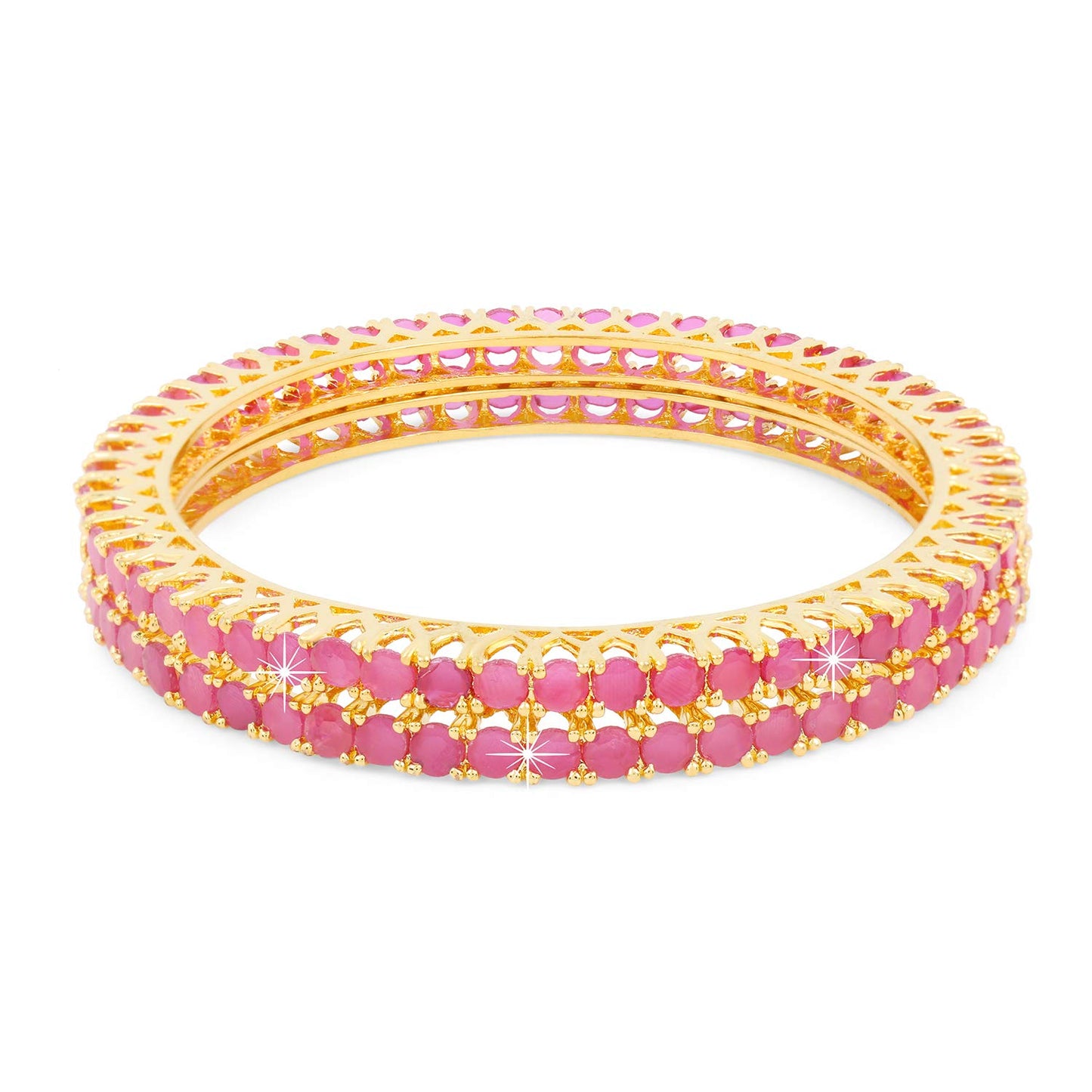 - Elegant Pretty adorable Stylish Ad/American Diamond Ruby Pink Crystal Studded 18k Gold Plated Classic Designer Traditional Bangles Jewellery are Ethnic yet Contemporary hold in its Design, can be worn on any Occasion to boost up your Attire Looks