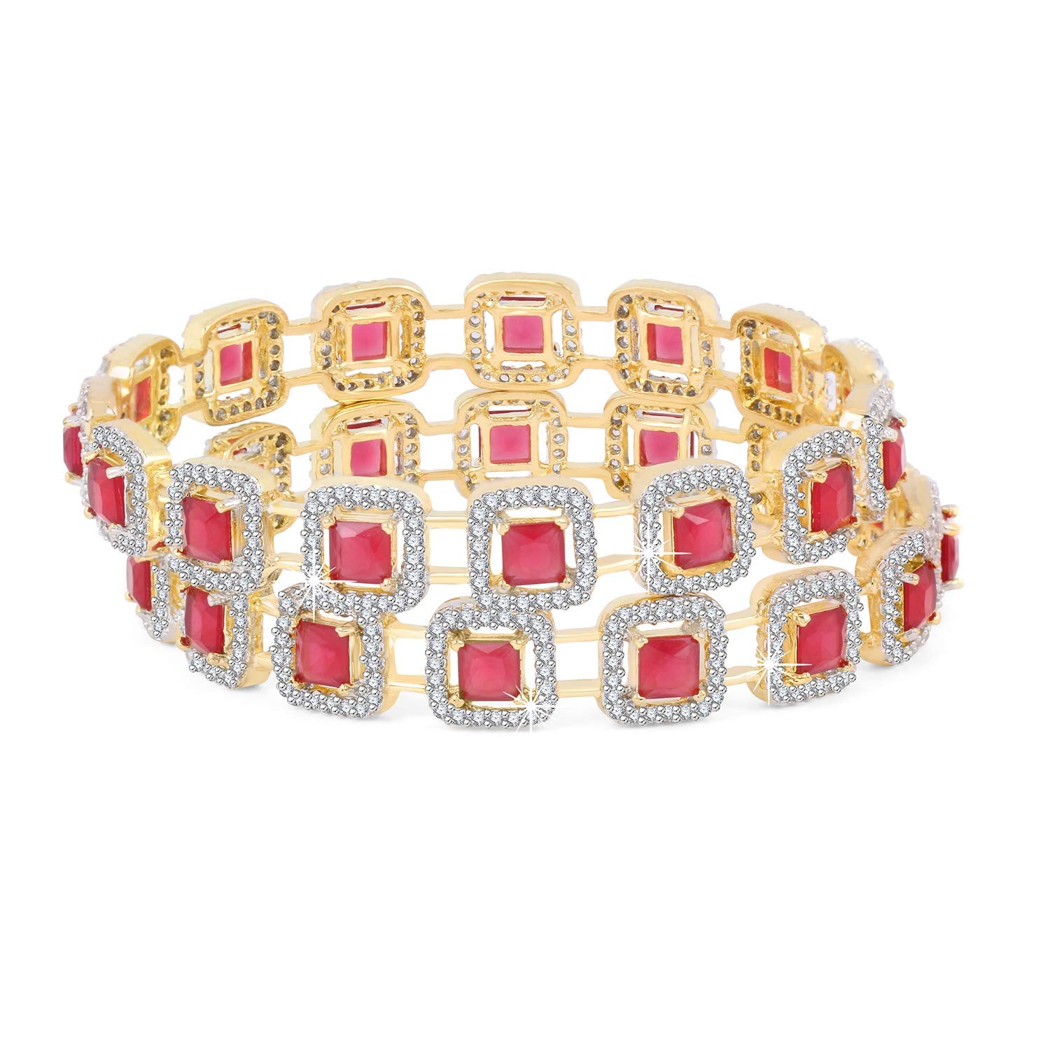 Elegant Set of 2 Pcs Pink AD/American Diamond Studded 18k Gold Plated Handcrafted Ruby Bangles for Women & Girls (2.8)