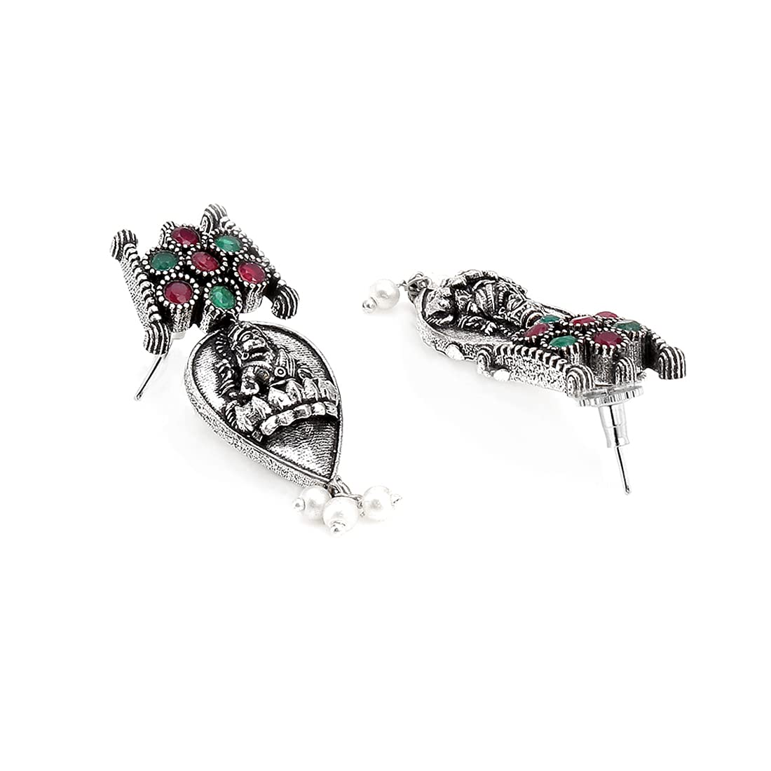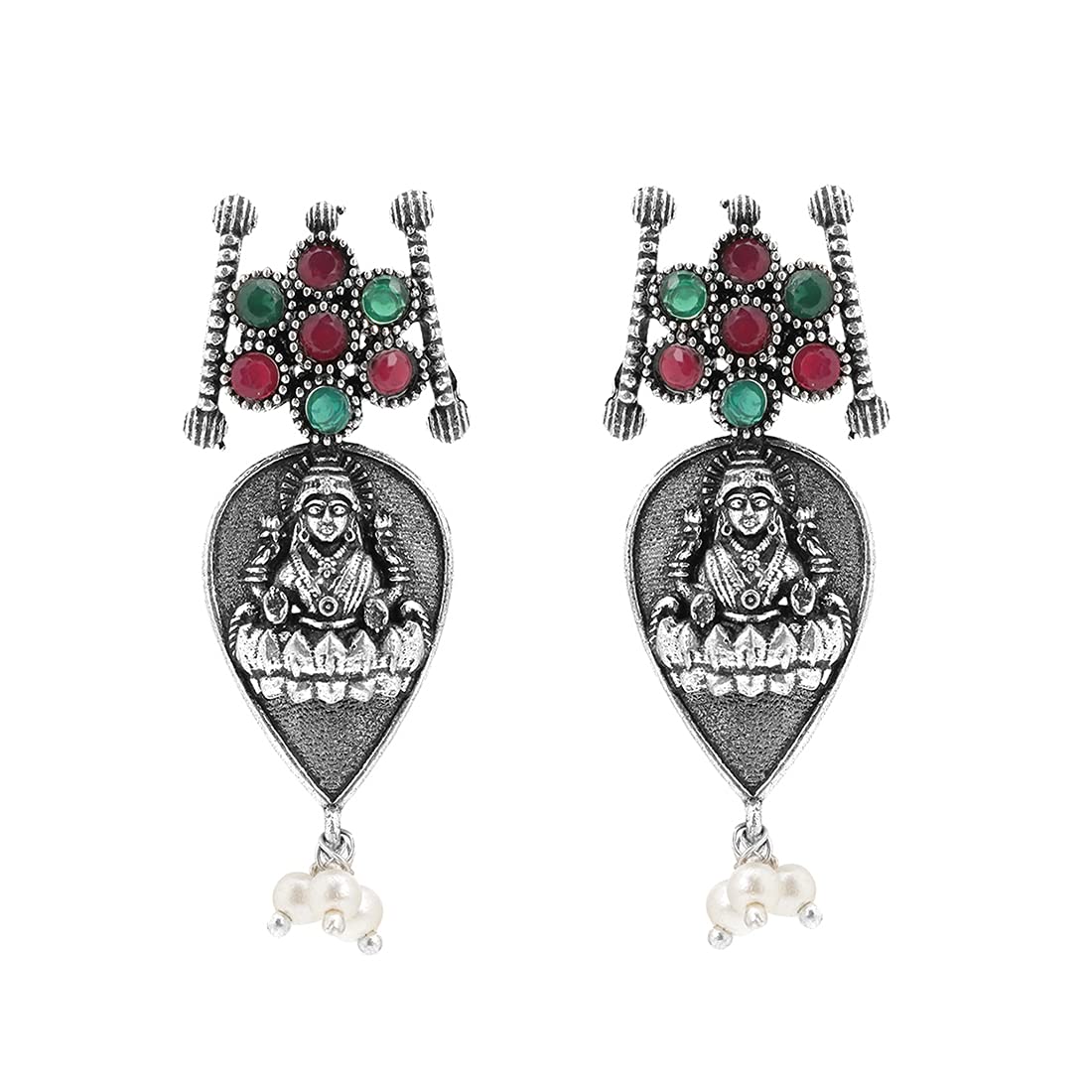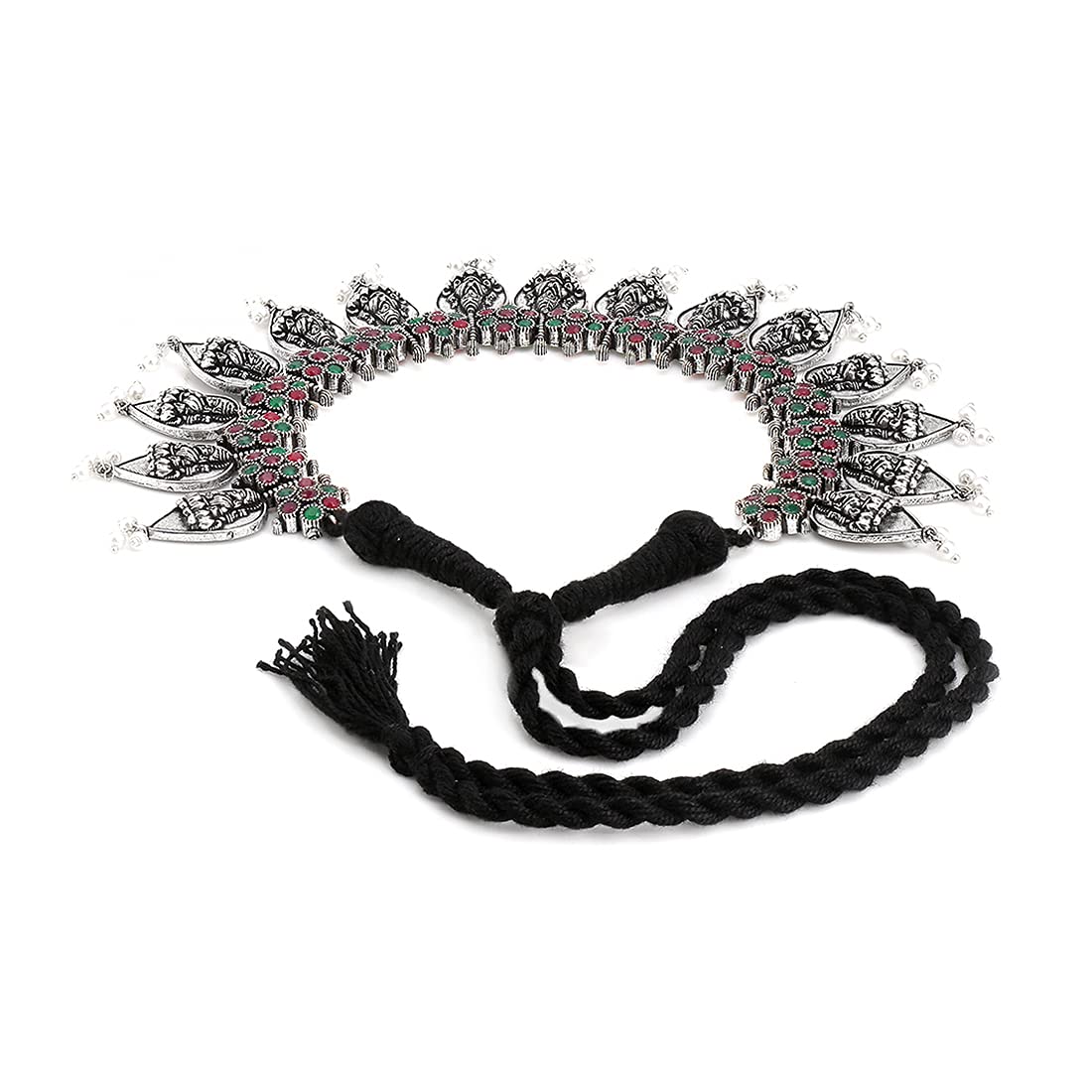 Yellow Chimes Ethnic German Silver Oxidised Multicolour studded stones moti Design Lakshmi Choker Necklace Set Traditional Jewellery Set for Women and Girls, Medium (YCTJNS-54OXDLFLK-MC)