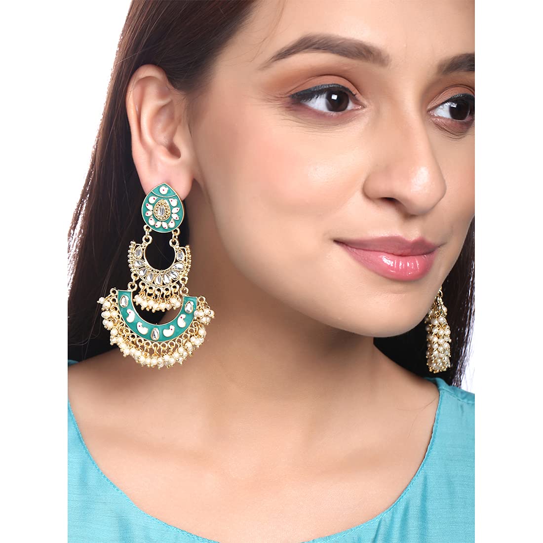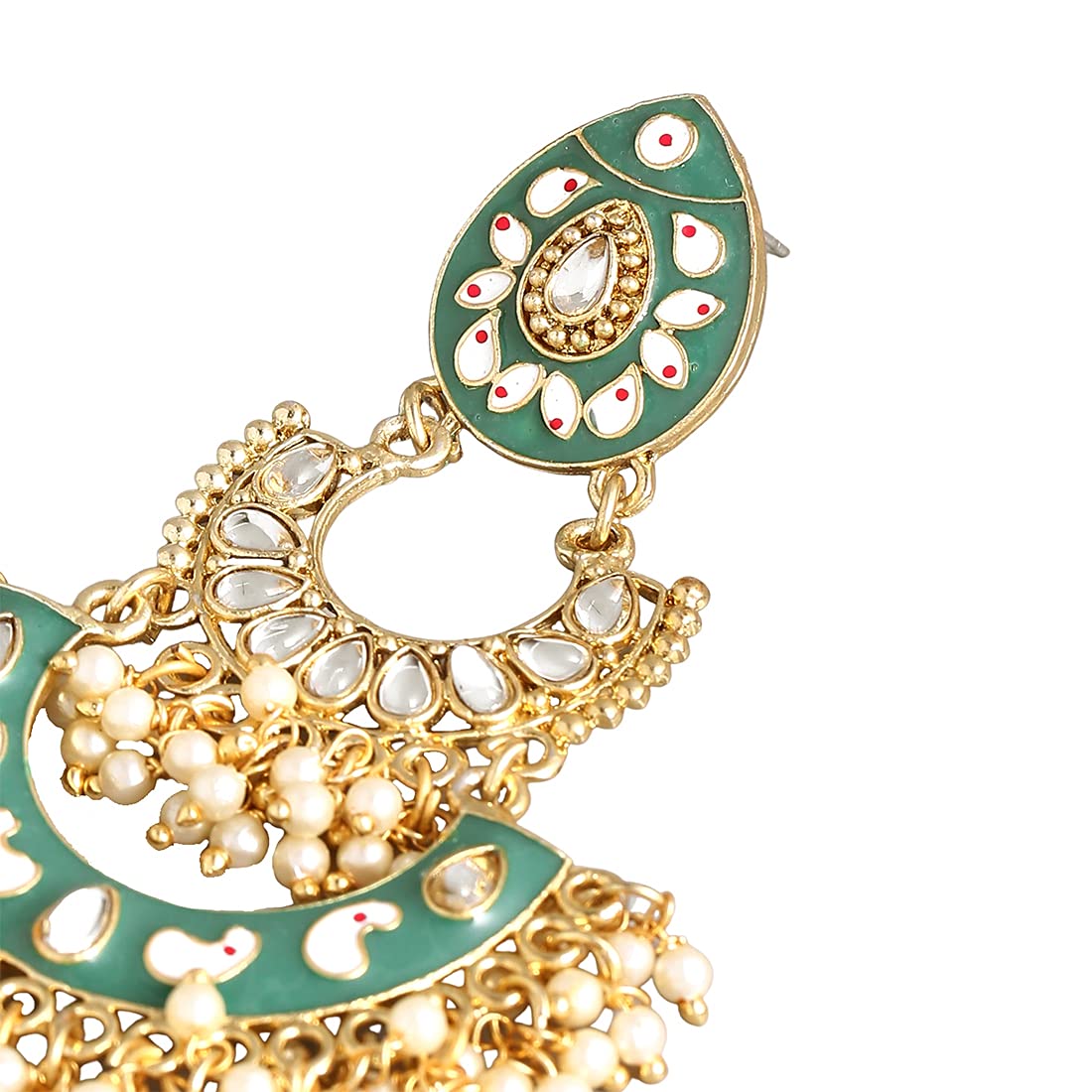Yellow Chimes Ethnic Gold Plated Green Enamel Handpainted Design Stones Beads Traditional Chandbali Earrings for Women and Girls, Medium (YCTJER-DGNCHDBL-GR)