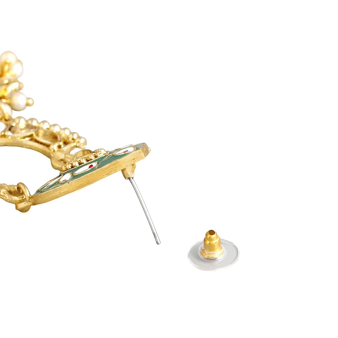 Ethnic Gold Plated Green Enamel Handpainted Design Stones Beads Traditional Chandbali Earrings for Women and Girls, Medium (YCTJER-DGNCHDBL-GR)