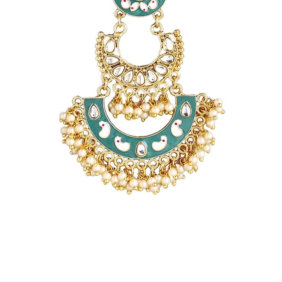 Elevate your accessory game with the Yellow Chimes Ethnic Gold Plated Green Enamel Handpainted Design Stones Beads Traditional Chandbali Earrings. Perfectly crafted for women and girls, these medium-sized earrings (YCTJER-DGNCHDBL-GR) are a stunning fusion of tradition and modern elegance.