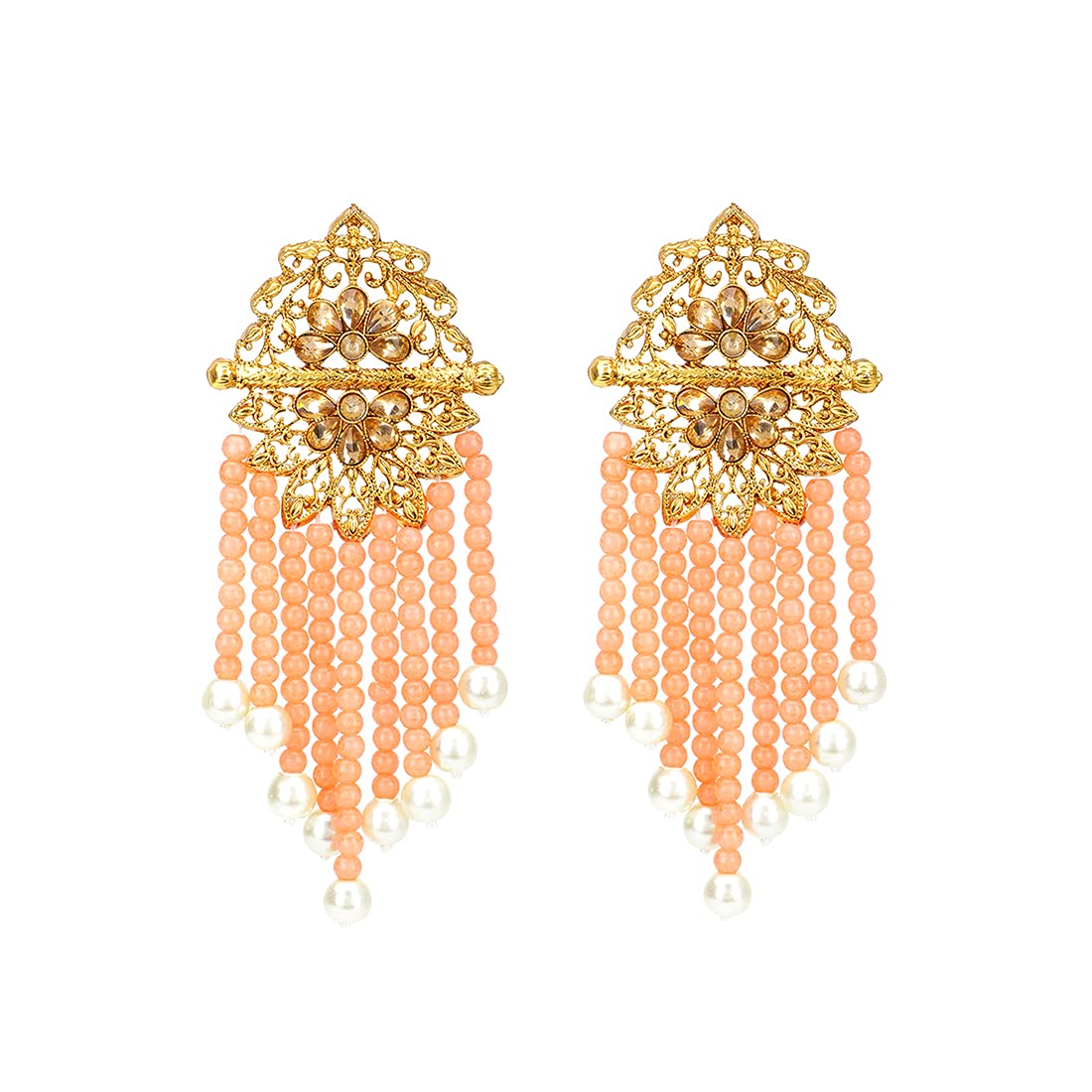Discover the Elegance of Yellow Chimes Ethnic Gold Plated Kundan Studded Peach Pearl Dangler Earrings