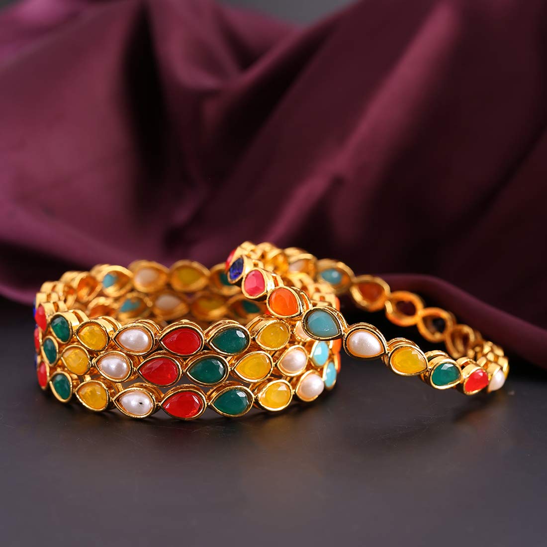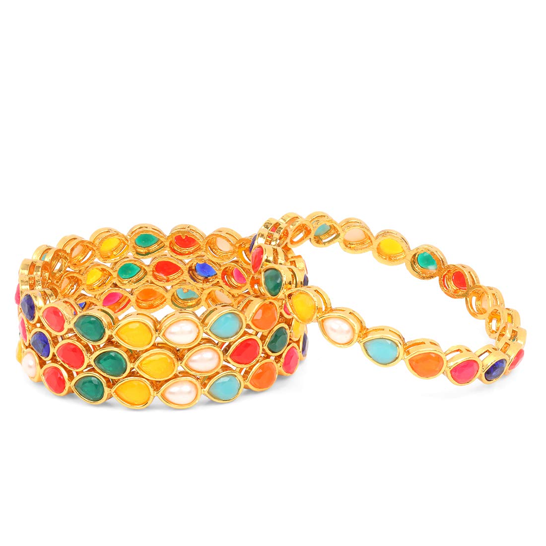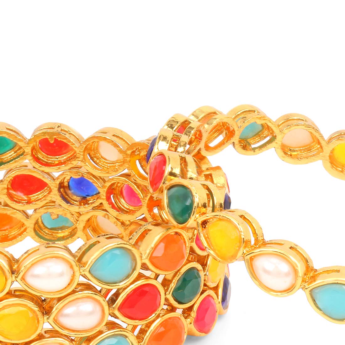 Yellow Chimes Bangles for Women and Girls Traditional Multicolor Bangles for women | Gold Plated Stones Studded Bangles for Girls 4 Pcs Bangle | Birthday Gift For Girls & Women