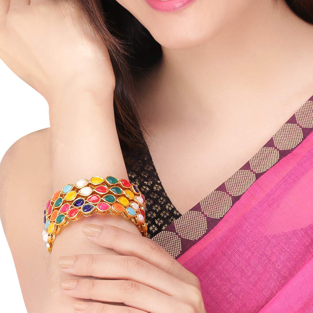 Bangles for Women and Girls Traditional Multicolor Bangles for women | Gold Plated Stones Studded Bangles for Girls 4 Pcs Bangle | Birthday Gift For Girls & Women