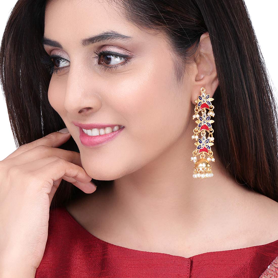 - Exquisite Design: The intricate meenakari flower design adds a touch of elegance, making these earrings a perfect accessory for your ethnic wear.