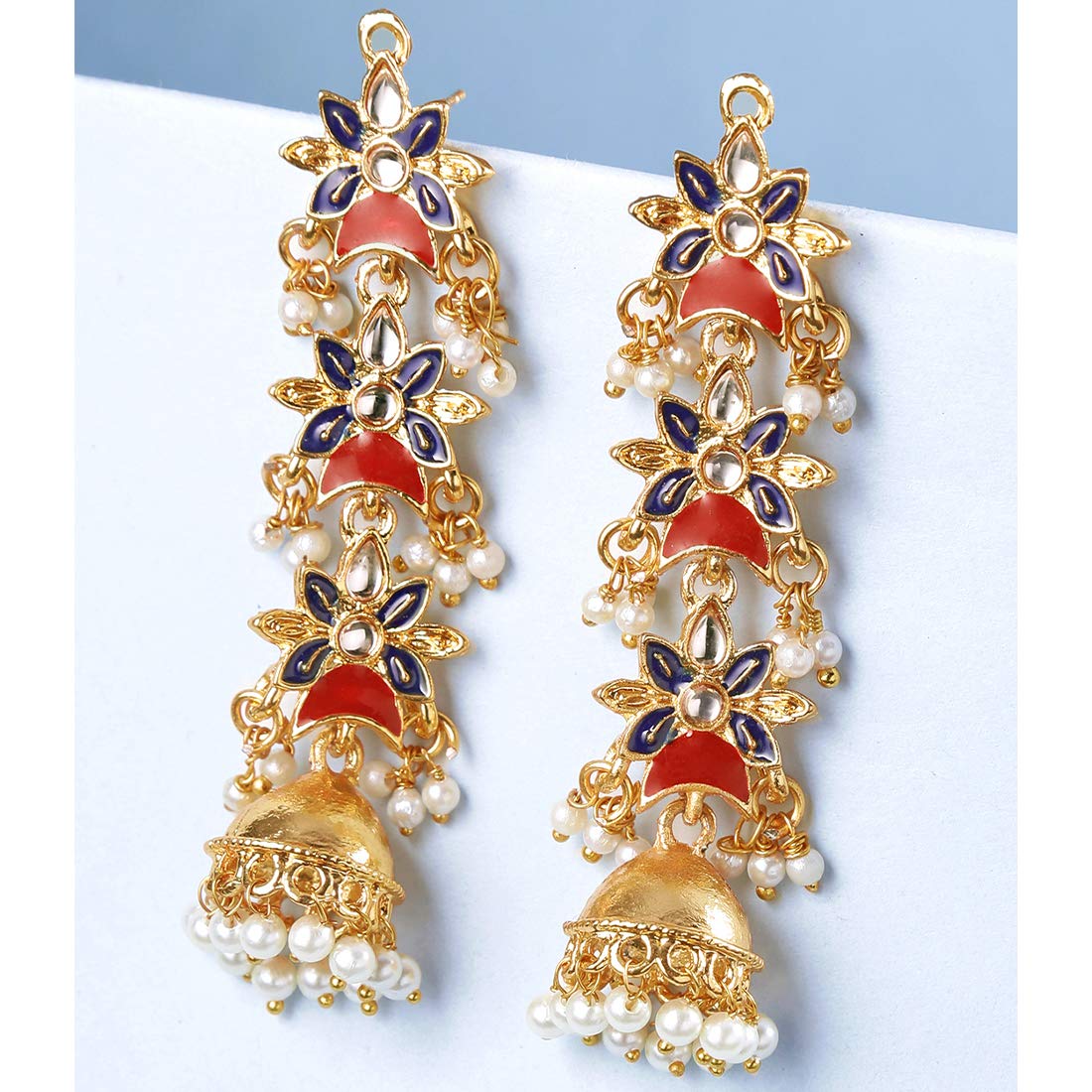 Yellow Chimes Ethnic Gold Plated Traditional Meenakari Flower Design Chandbali Beads Jhumka Dangler Earrings for Women and Girls (Design 13)