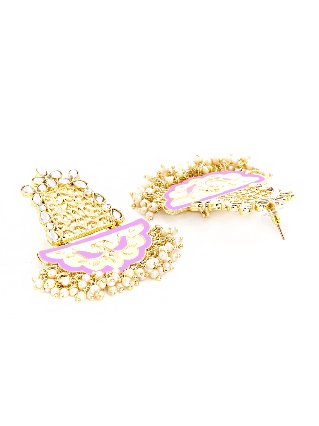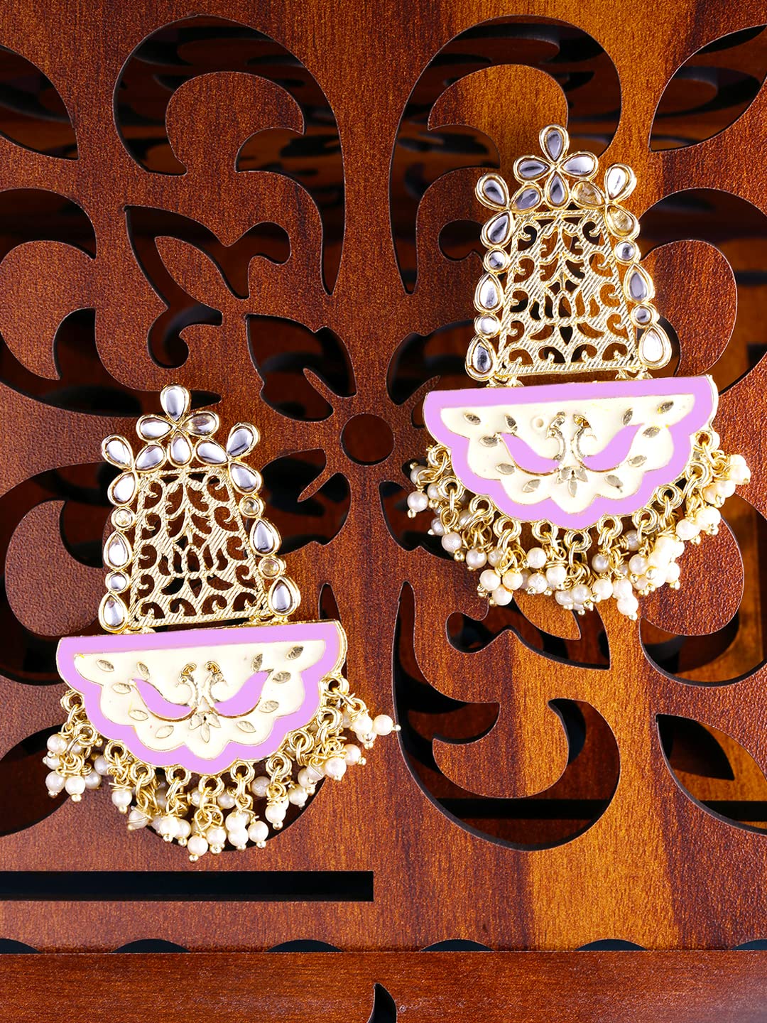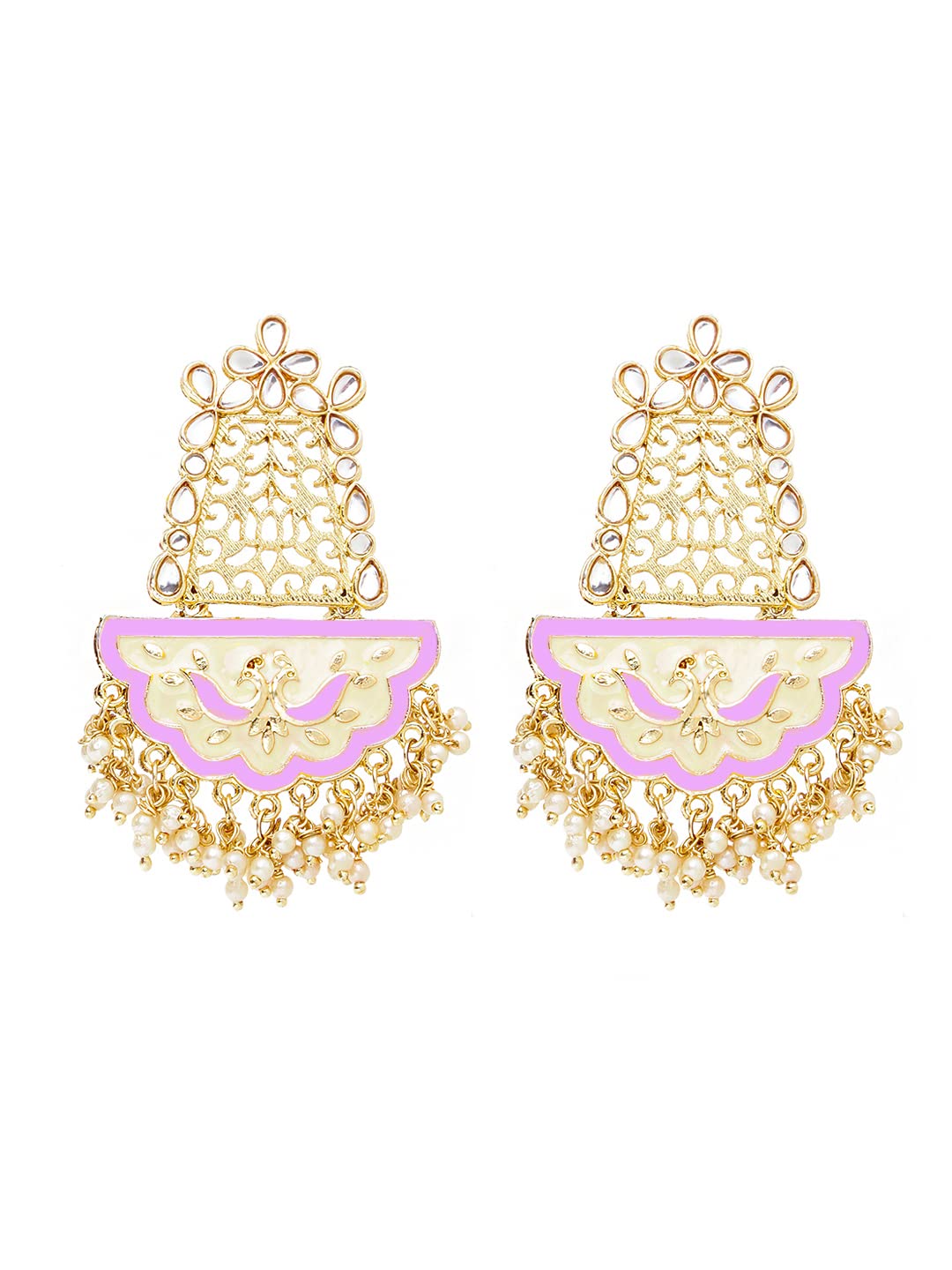 Step into the world of traditional beauty with the Yellow Chimes Ethnic Gold Plated Chandbali Earrings. These exquisite earrings feature a stunning Yellow Meenakari Peacock Flower Design adorned with delicate Moti beads, adding a touch of heritage to your jewelry collection.