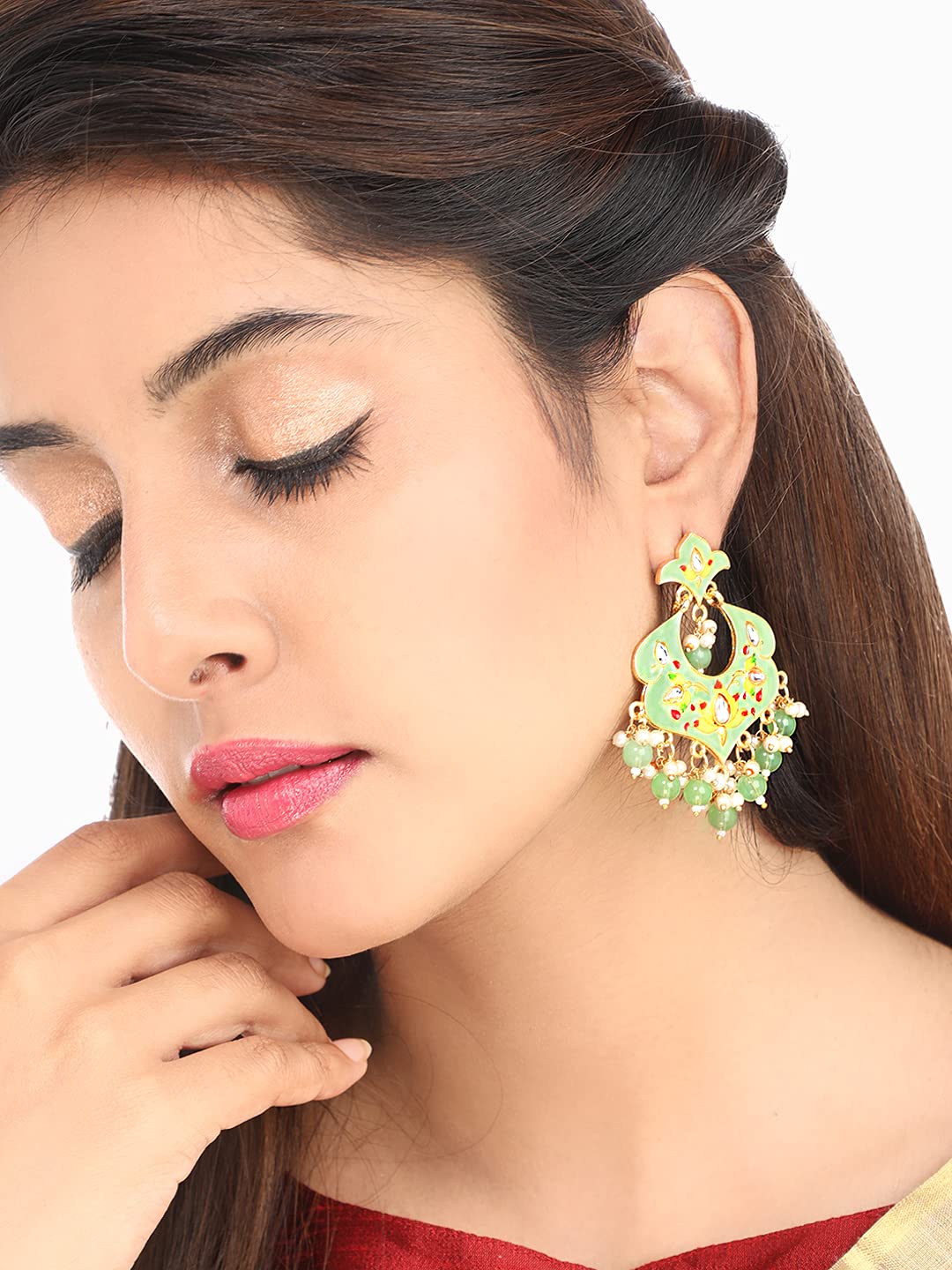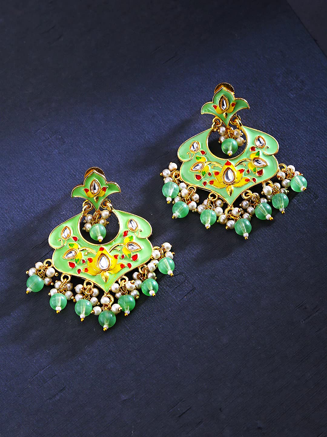 - Stunning Design: Featuring a captivating green meenakari floral pattern, these chandbali earrings embody timeless elegance.