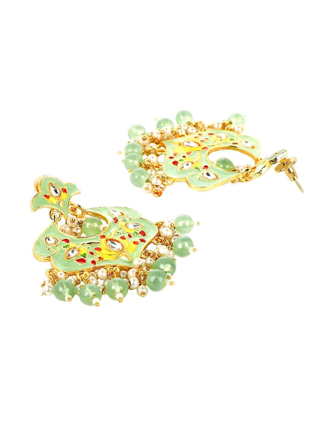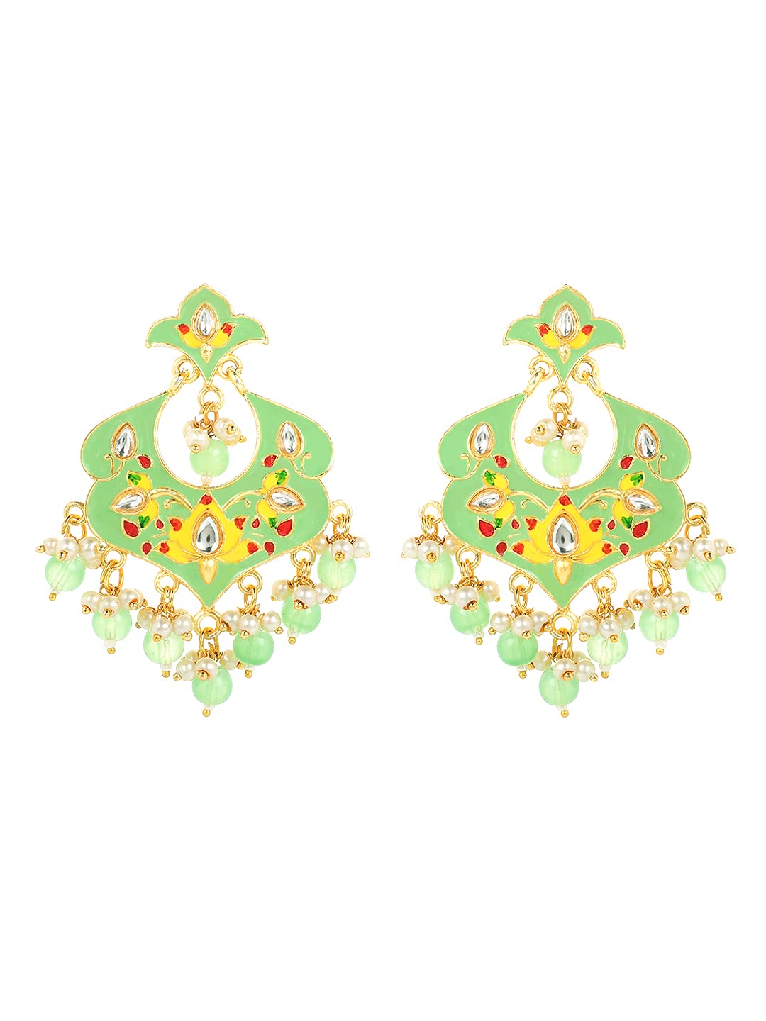 Yellow Chimes Ethnic Gold Plated Traditional Beads Green Meenakari Floral Design Chandbali Earrings for Women and Girls, Medium (YCTJER-99MNKFLW-GR)