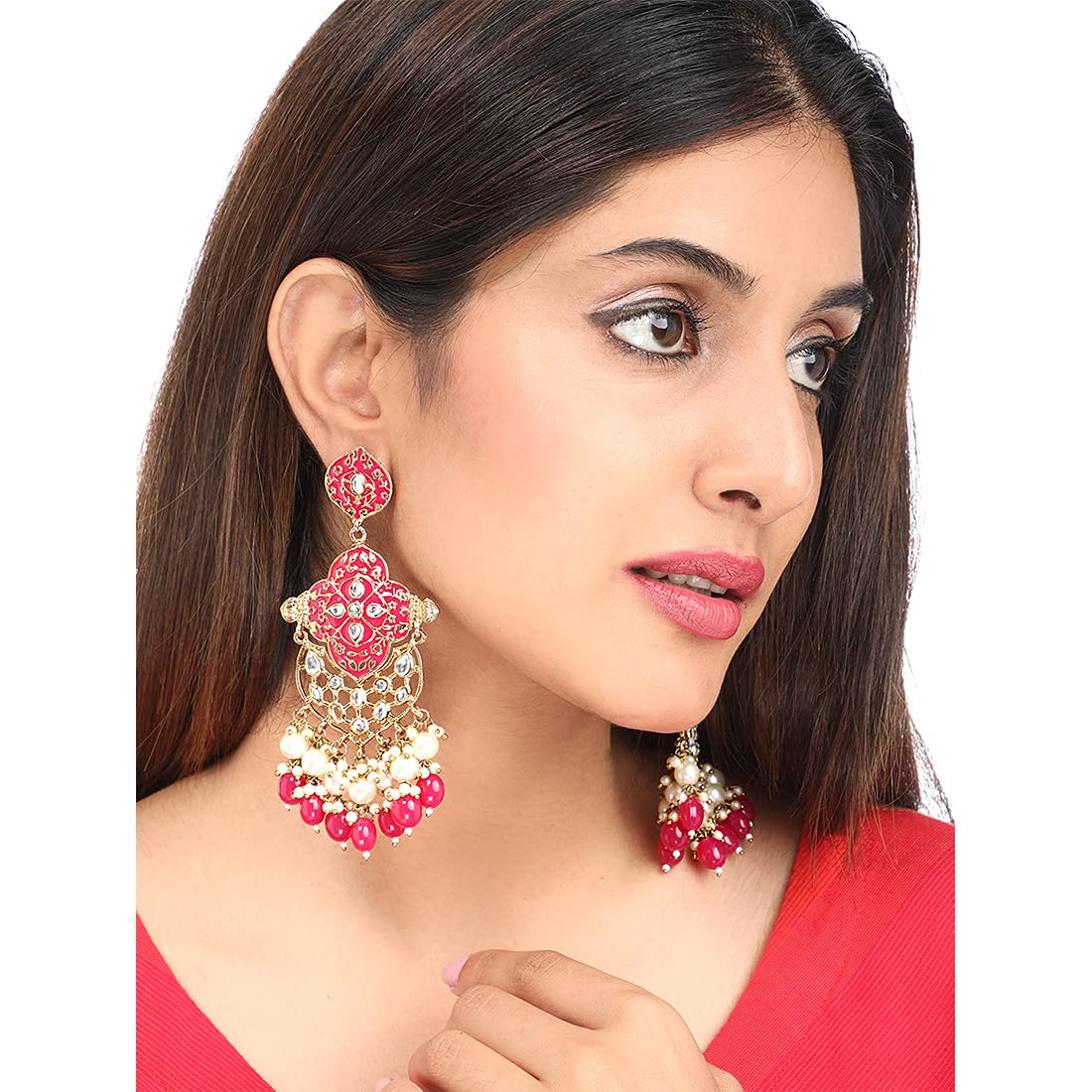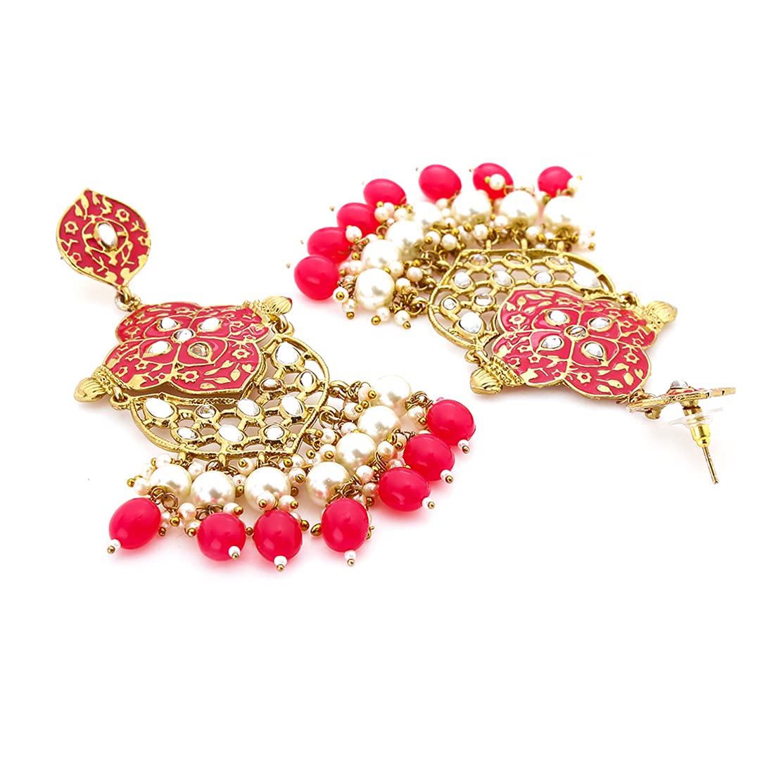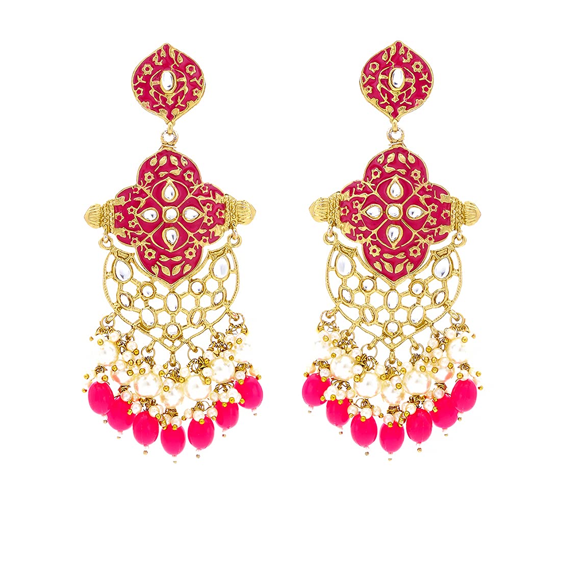 Yellow Chimes Ethnic Gold Plated Traditional Pearl Beads Pink Meenakari Flower Design Dangler Earrings for Women and Girls, Medium (YCTJER-102MNKDNG-PK)