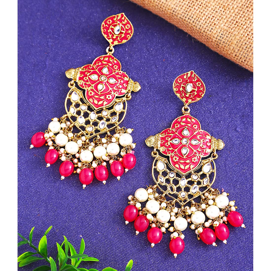 - Artisanal Design: Adorned with intricate pink Meenakari flower patterns, each earring is a testament to fine artistry and tradition.
