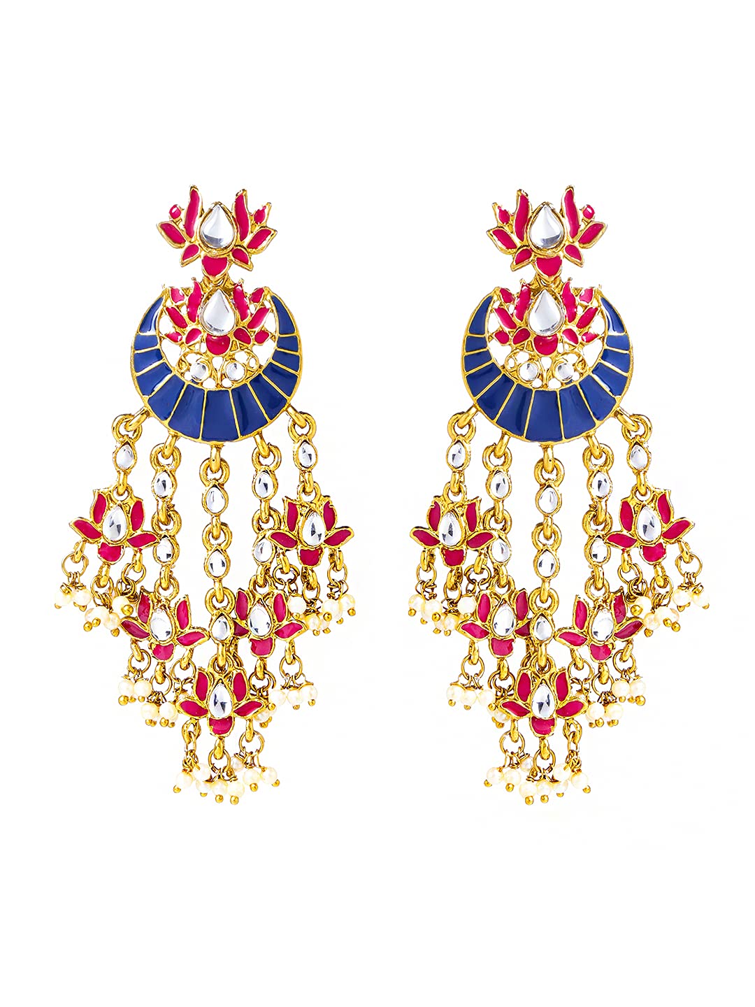 Yellow Chimes Ethnic Gold Plated Traditional Pink Meenakari Lotus Flower Design Chandbali Beads Dangler Earrings for Women and Girls, Multicolour, Medium (YCTJER-106MNKLTS-MC)