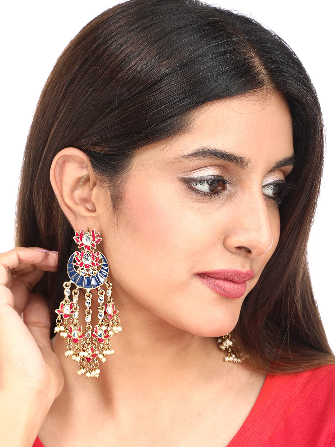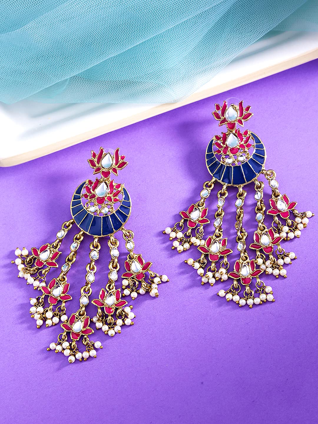 Elevate your jewelry collection with the exquisite Yellow Chimes Ethnic Gold Plated Chandbali Earrings. Adorned with a stunning Pink Meenakari Lotus Flower Design, these earrings are the perfect accessory for women and girls who appreciate traditional craftsmanship blended with modern aesthetics.