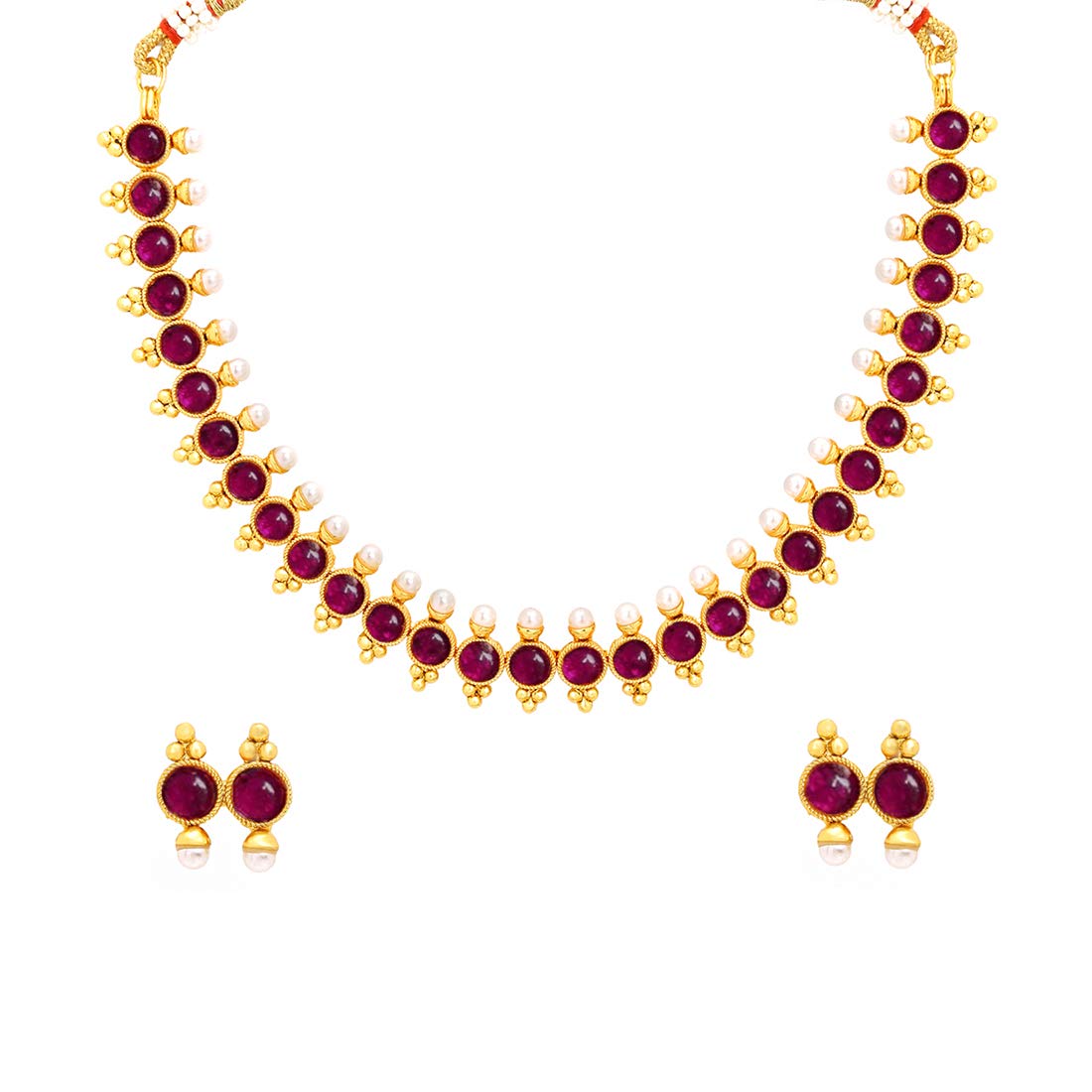 - Ethnic & stylish looks latest trend handcrafted studded stones beads choker necklace set gold plated traditional designer pearl jewellery set Stunning & Preciously Suitable Looks for all Kinds of Occasions- Party / Festival / Wedding.