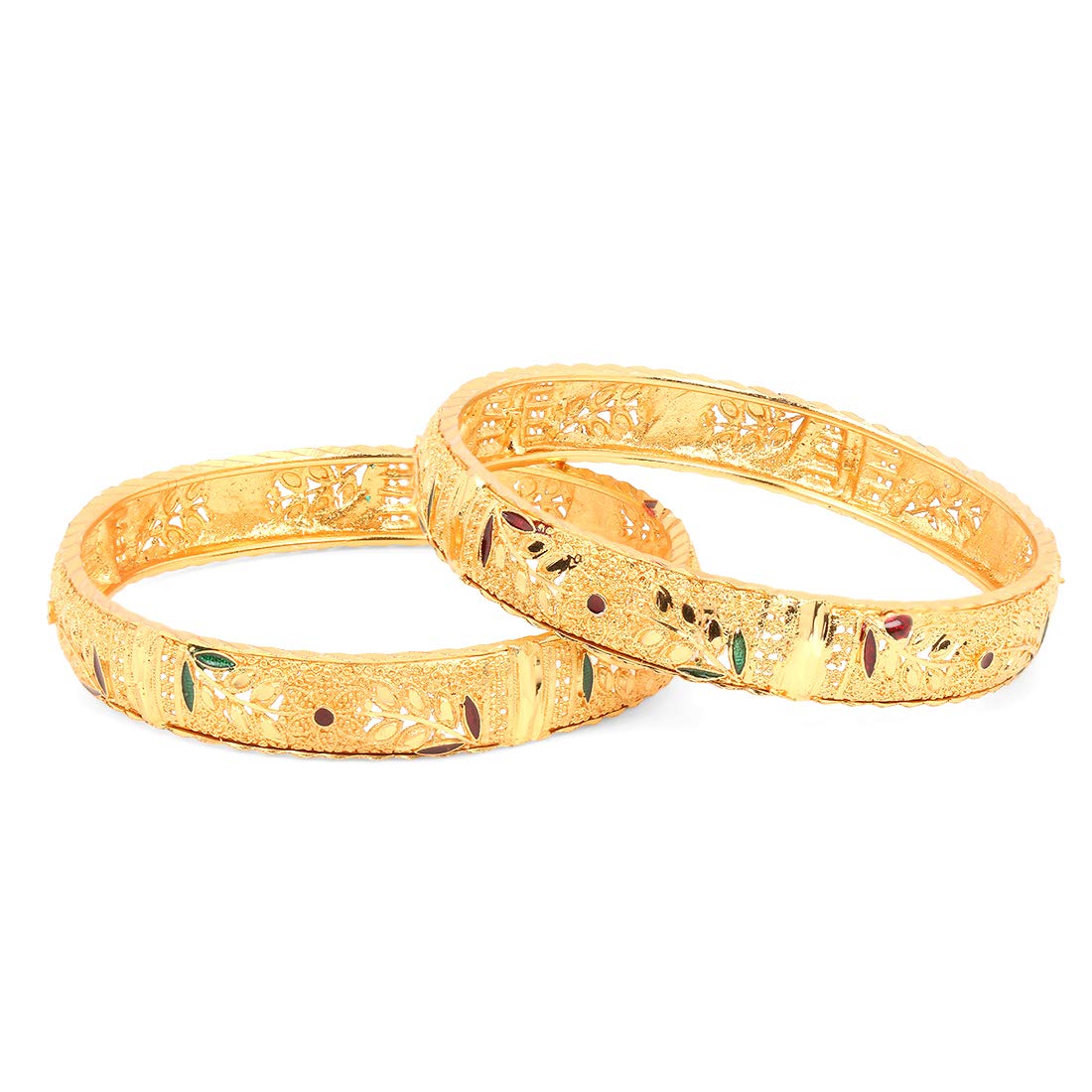 Latest Design Ethnic Look Gold Plated Designer Traditional 2 Pcs Bangles Set for Women and Girls (2.8)