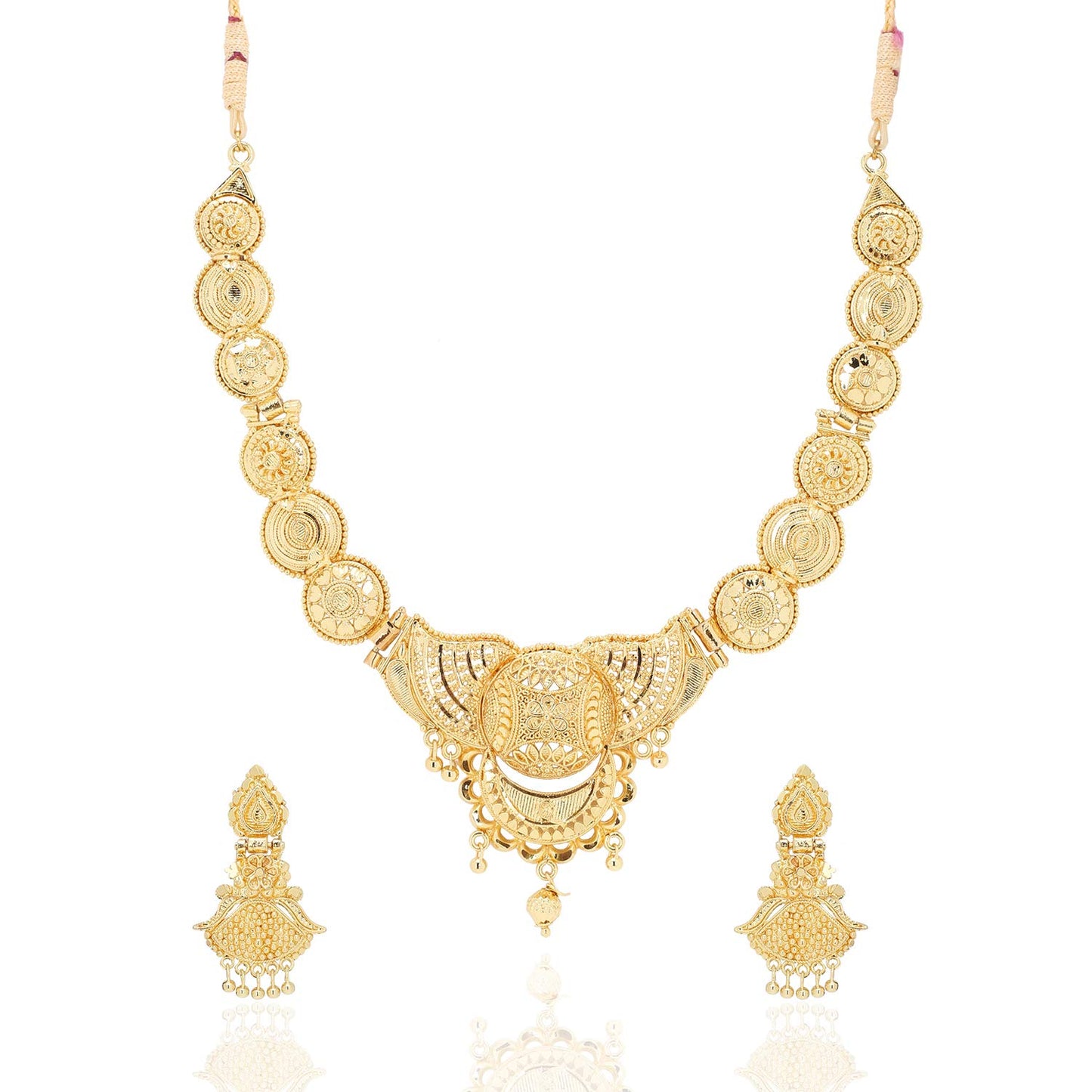 Yellow Chimes Ethnic One Gram Gold Designer Antique Golden Traditional Choker Necklace With Earrings Wedding Jewellery Set for Women & Girls