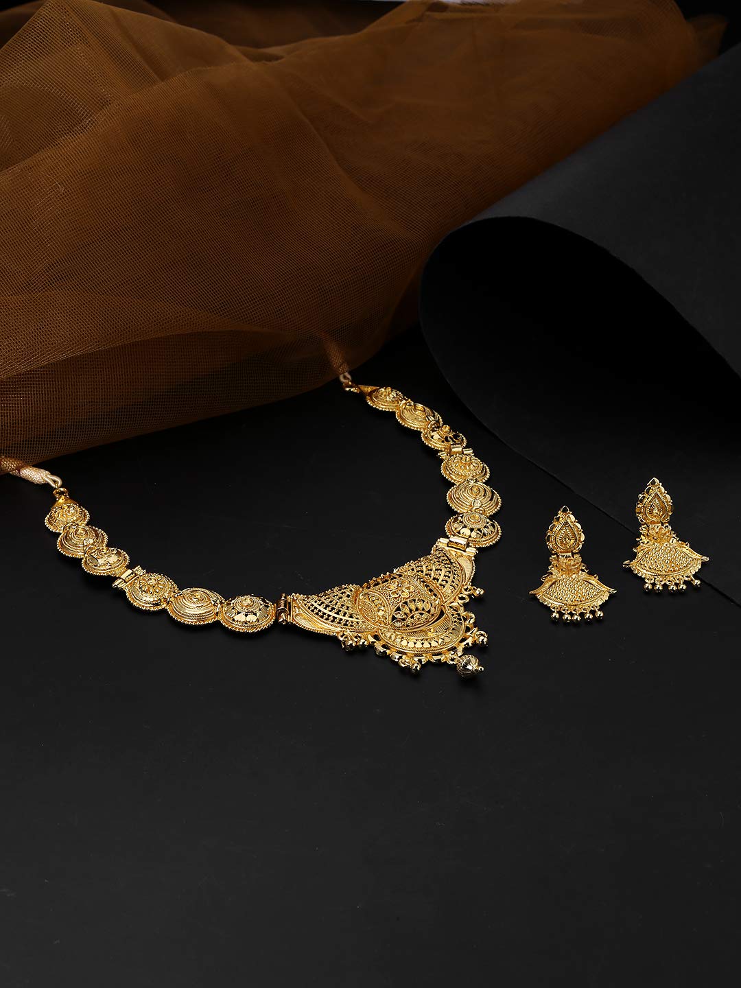 - Handcrafted to Perfection For exact Like Original Look Jewellery.Ethnic & Stylish Looks 1 Gram gold plated Choker Necklace set Wedding wear jewellery set Stunning and Preciously Suitable Looks for all Kinds of Occasions- Party / Festival / Outings.