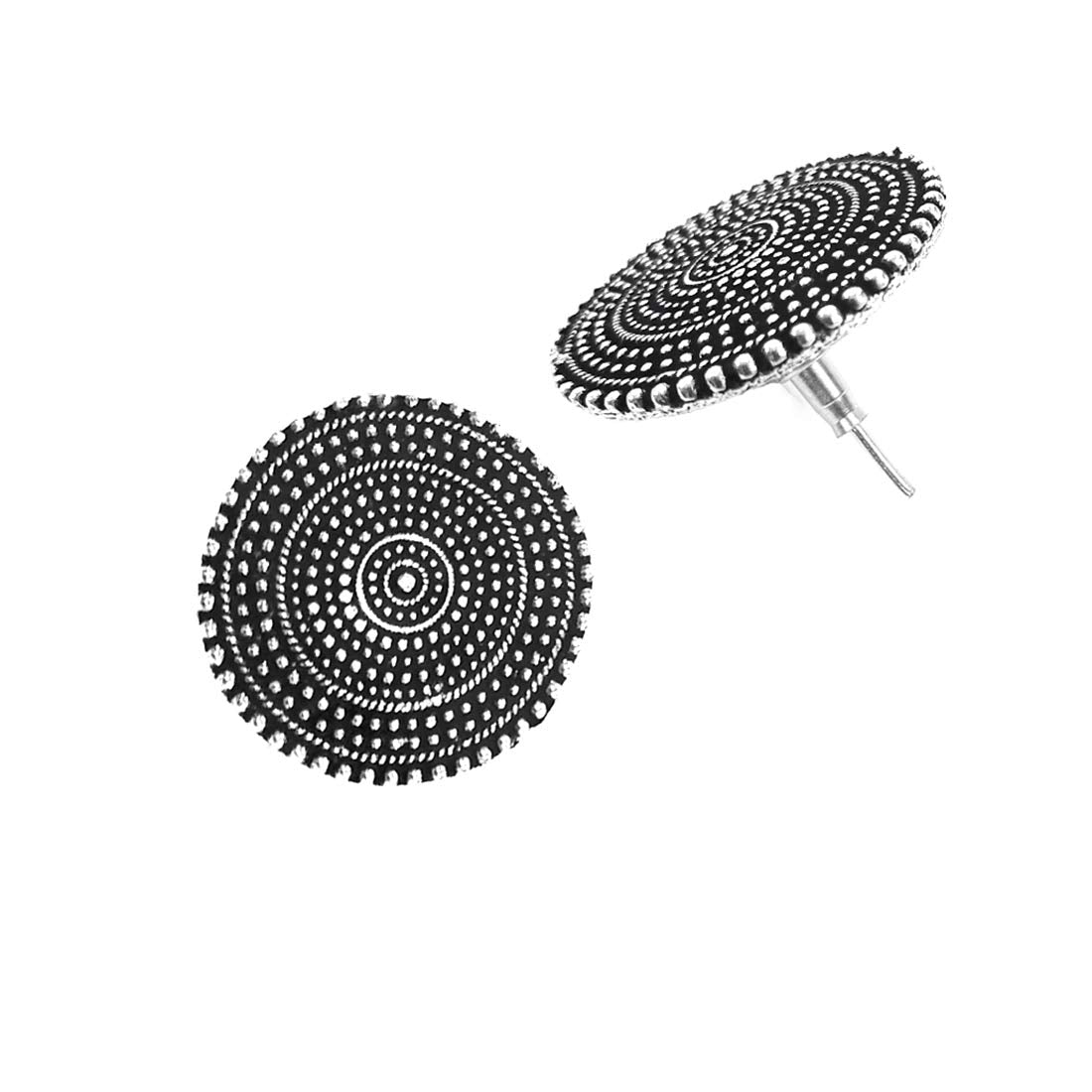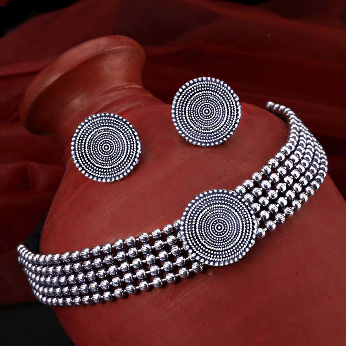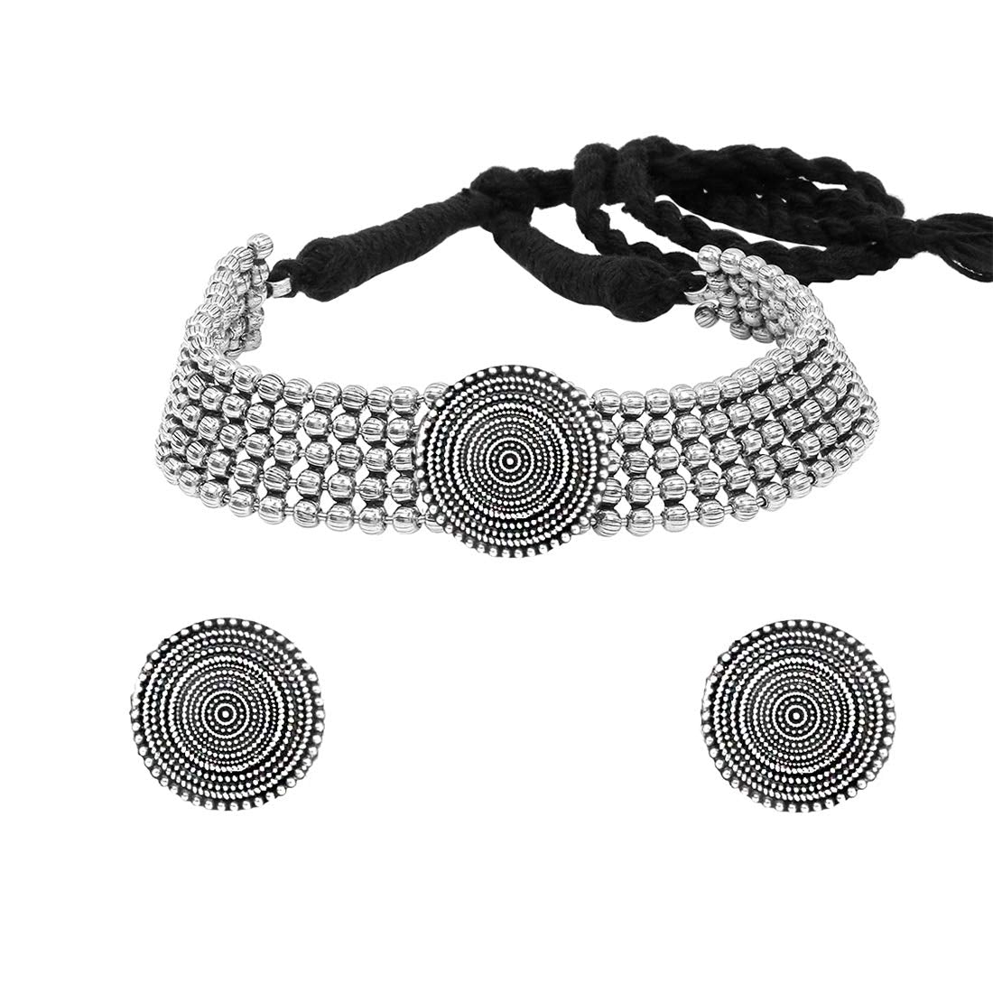 Ethnic Oxidised Silver Threaded Jewelry Beads Traditional Choker Necklace Set for Women and Girls, medium (YCTJNS-49OXDCIRCL-SL)