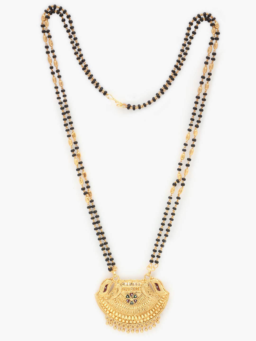 - Beauty- This Traditional Gold Plated Black Beads Mangalsutra Tanmaniya Necklace will complement any Traditional or Modern attire. Ethnic Traditional Gold Plated and Black Beaded Single Chain Mangalsutra complements all outfits & Can be worn on any occasion.